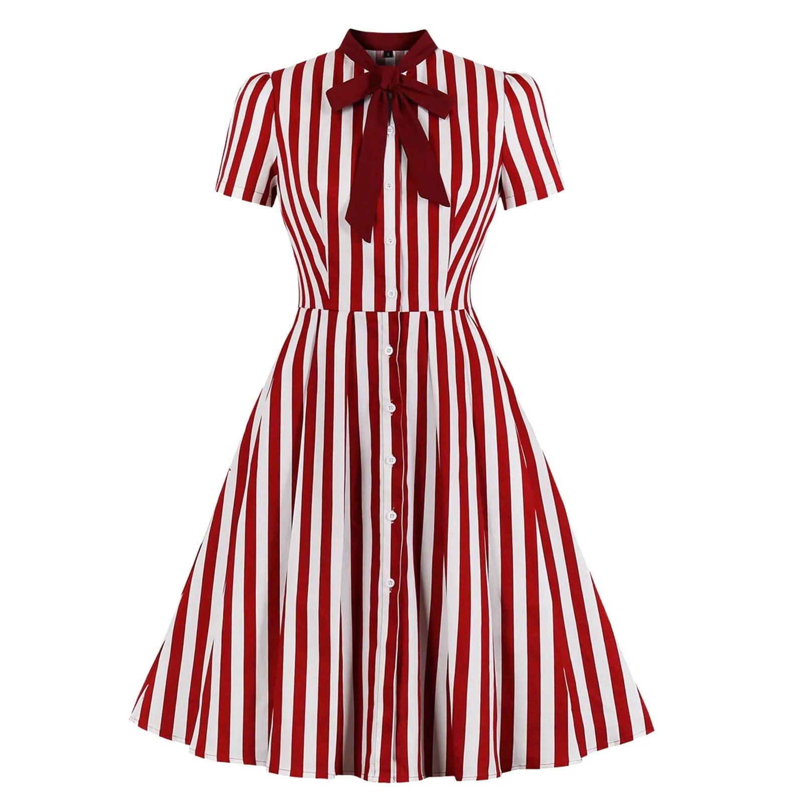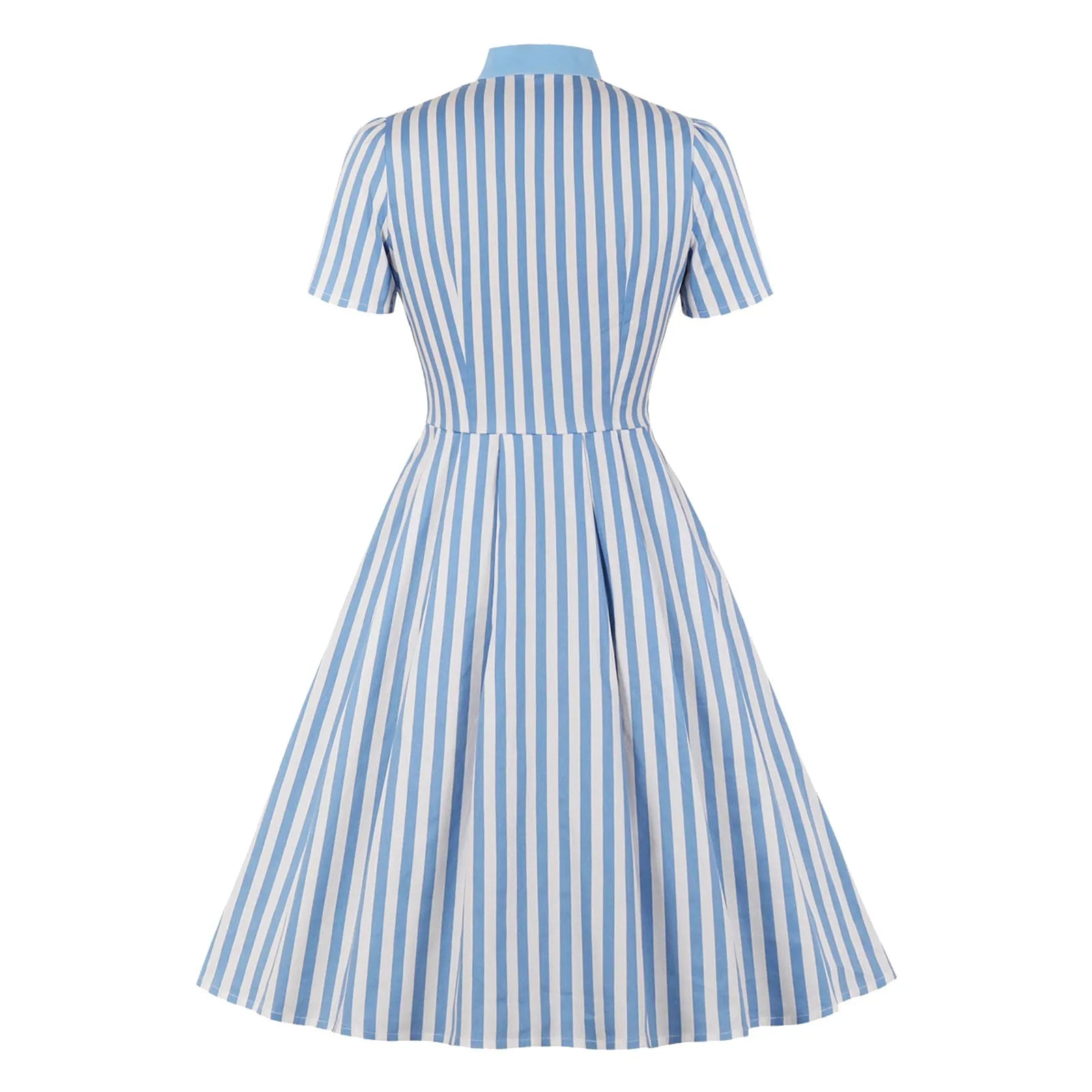 FashionSierra - New Bowknot Skater Embroidery Stitching Retro Autumn Short Sleeve Casual Dress