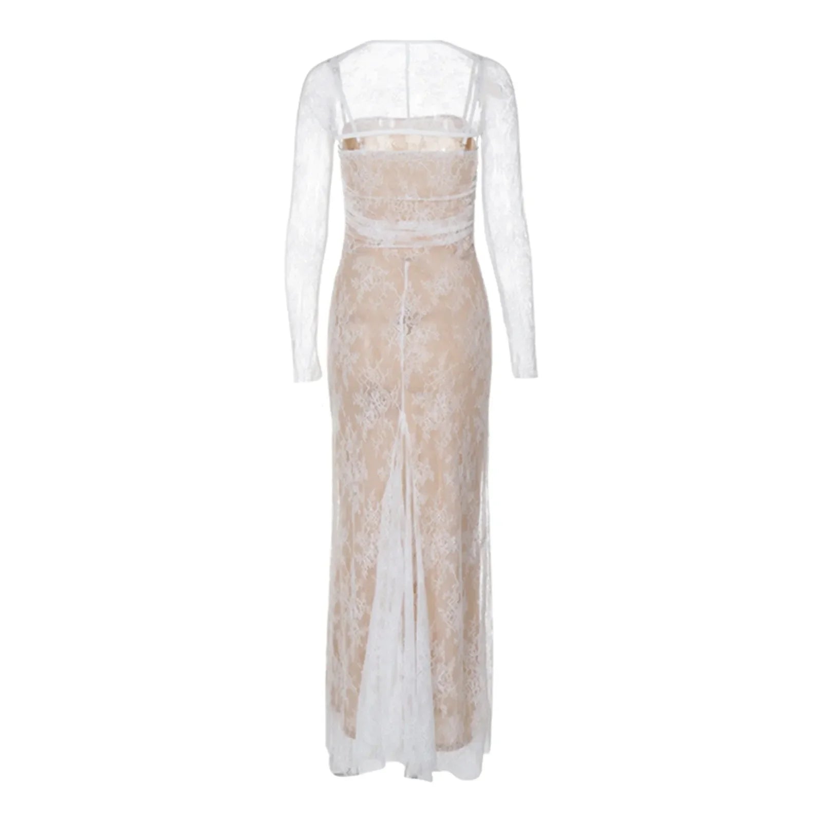 FashionSierra - New Fashion Elegant High Waist Long Sleeve Temperament Square Collar Mermaid Lace Prom Lace Dress