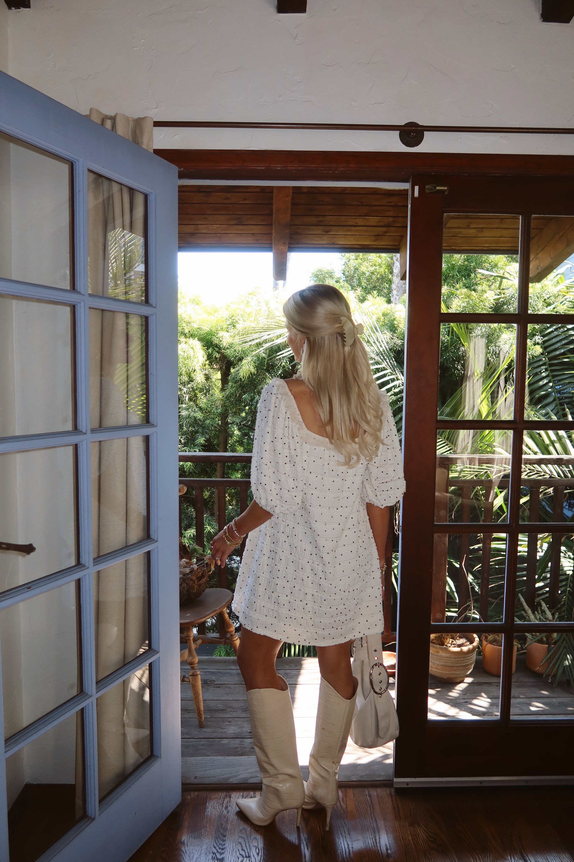 this dress is perfect for easter. or date night. or your summer vacay. OR your besties baby shower. insanely chic but also insanely comfy and effortless? style with boots, a chunky black slide or a pointed toe heel. you’re gonna look SO cute.