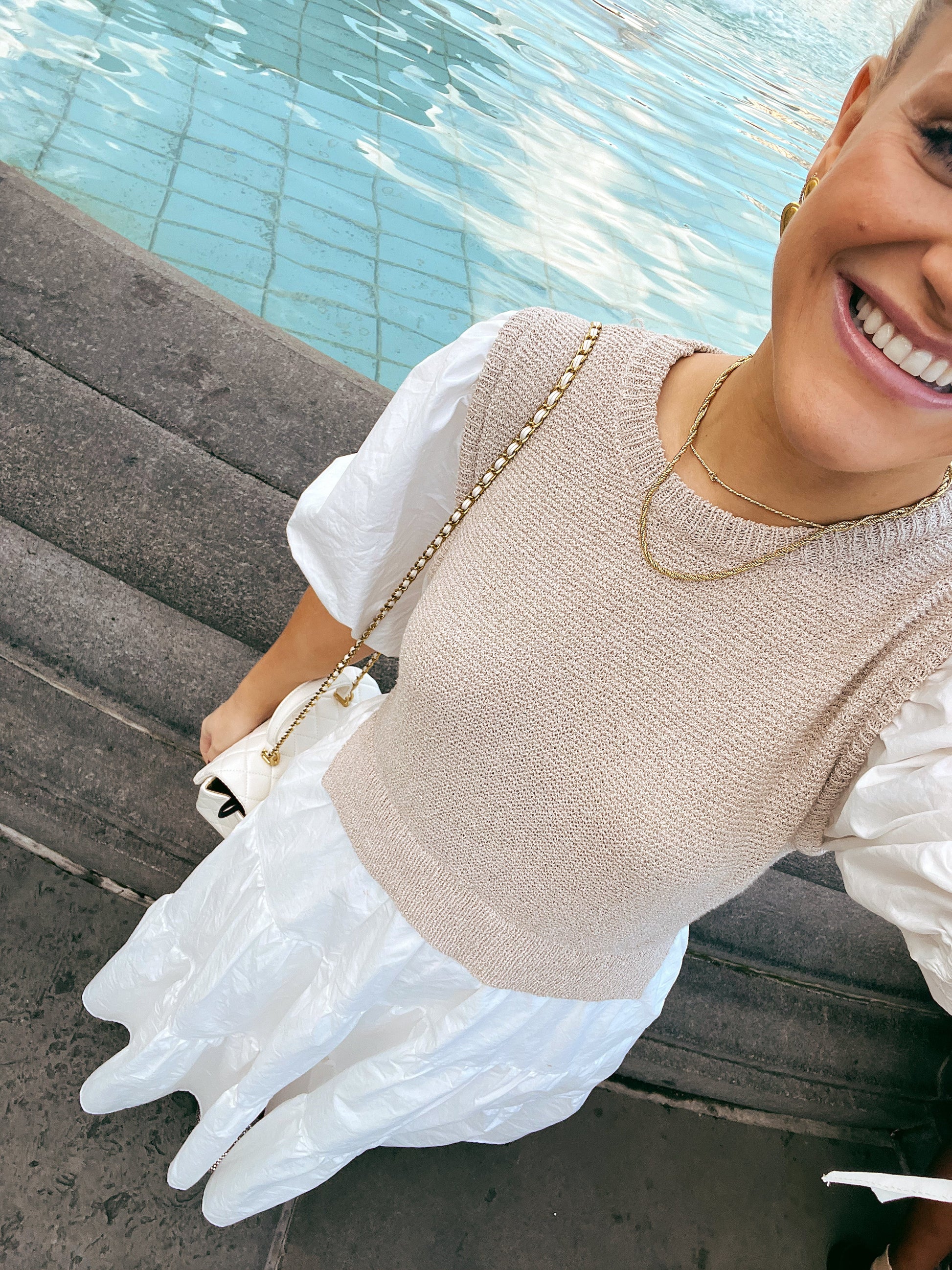 runs true to size and has some stretch, haidyn is 5'5 and wearing a size small.
