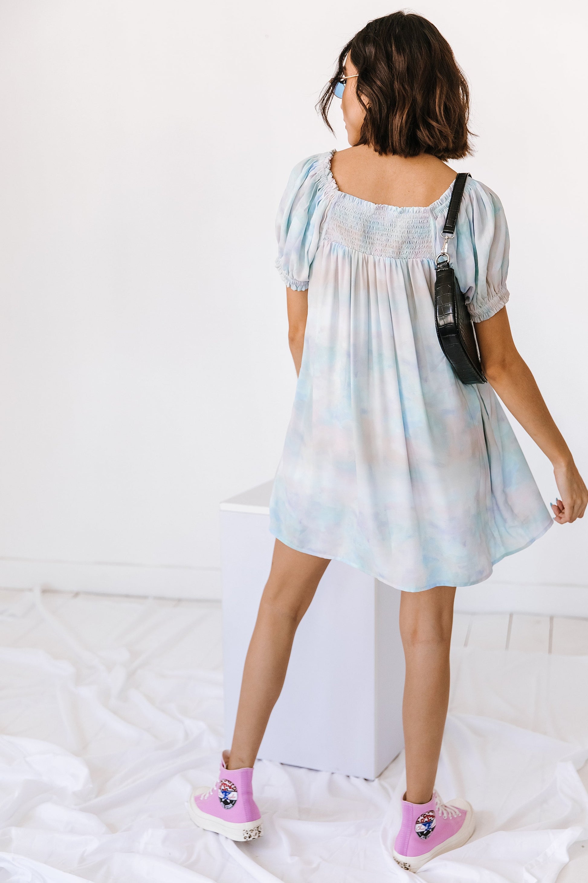Introducing our most magical, on brand piece EVER. Named our "You're The Magic Dress" because you can't wear it without feeling like straight up magic. Blue tie dye chiffon-like material, the perfect flowy easy dress for summer. Muse worthy fit + a total head turner whether you dress it up as a wedding guest or throw it over your suit & head to the beach. No cool girl closet is complete with out this statement dress.