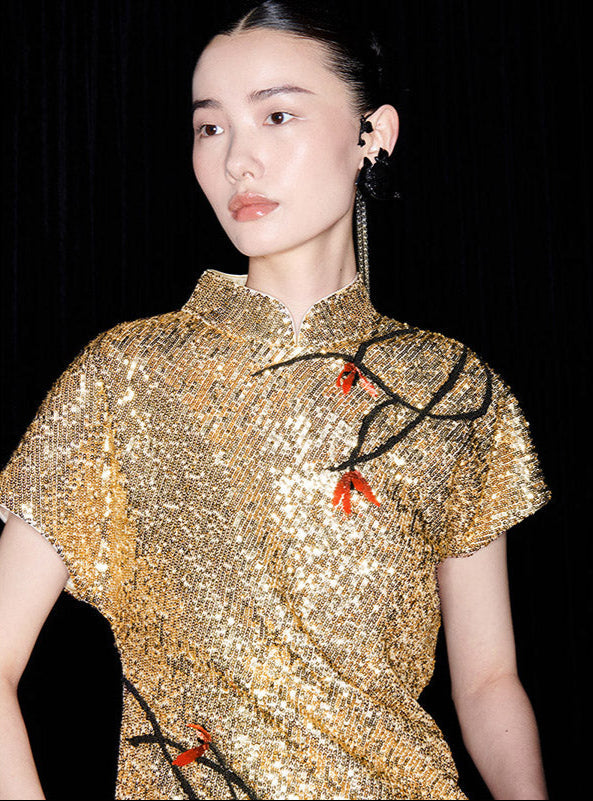 M essential Mackay designer three-dimensional Loushan red beaded dress - alan.