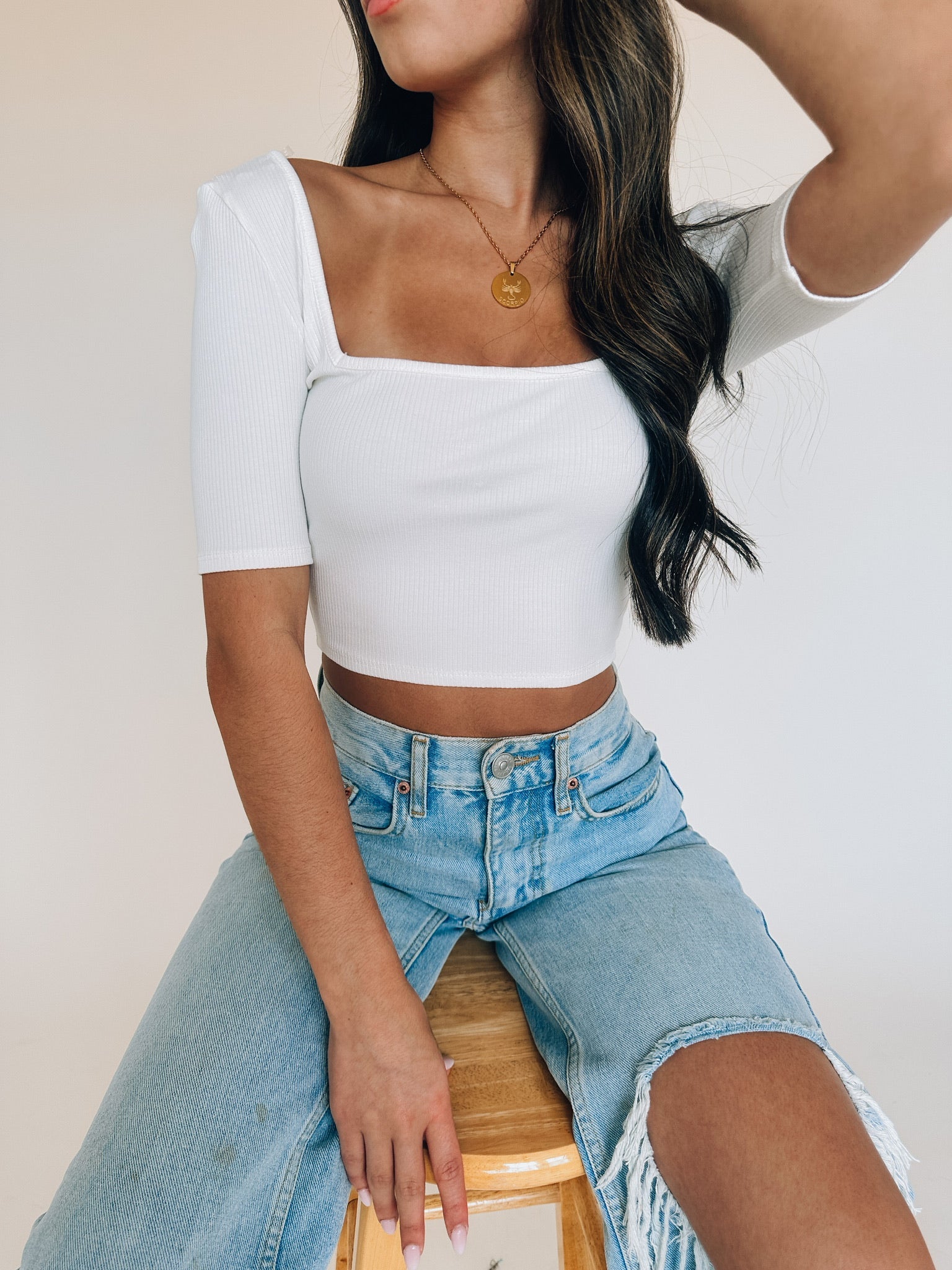 Gabby Ribbed Square Neck Top