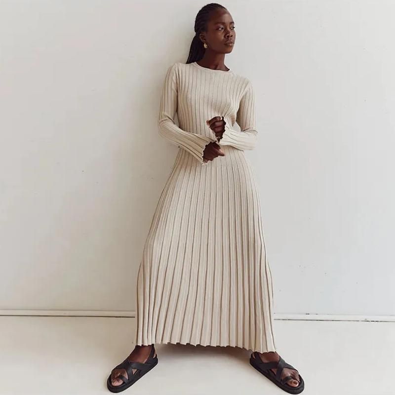 Our Elegant Pleated Knit Dress is more than just a piece of clothing; it's a fashion statement. With its timeless design, quality fabric, and flattering fit, it's sure to be a staple in your wardrobe. Don't miss out on this exquisite piece. Add it to your collection today and step out in style!