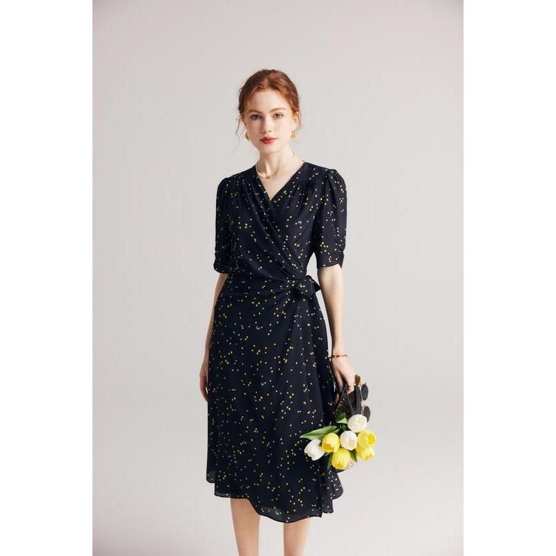 Step into a world of classic style with our Summer Elegance Black Polka Dot Silk Wrap Dress. Designed for the sophisticated woman who appreciates the finer things in life, this dress combines timeless fashion with modern comfort. Perfect for any occasion, from office meetings to evening soirees, this dress is your go-to choice for an effortlessly chic look.