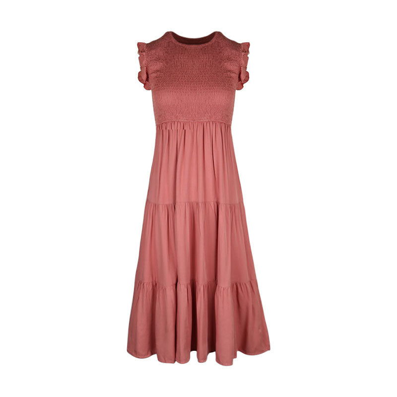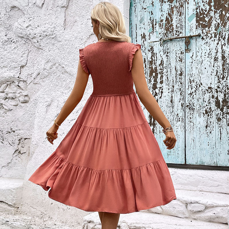 Women's Solid Color Sleeveless Stitching Smocking Dress