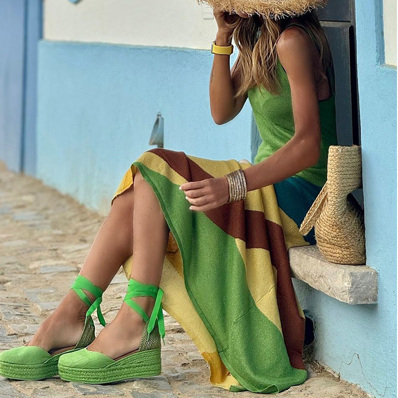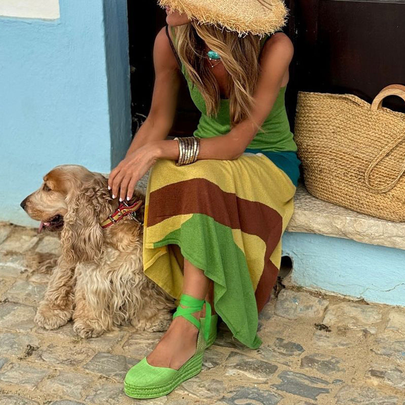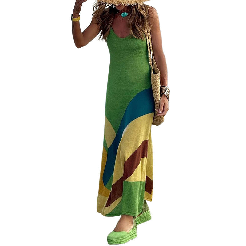 European And American Fashion Sexy Spaghetti-strap Floral Print Mid-length Dress