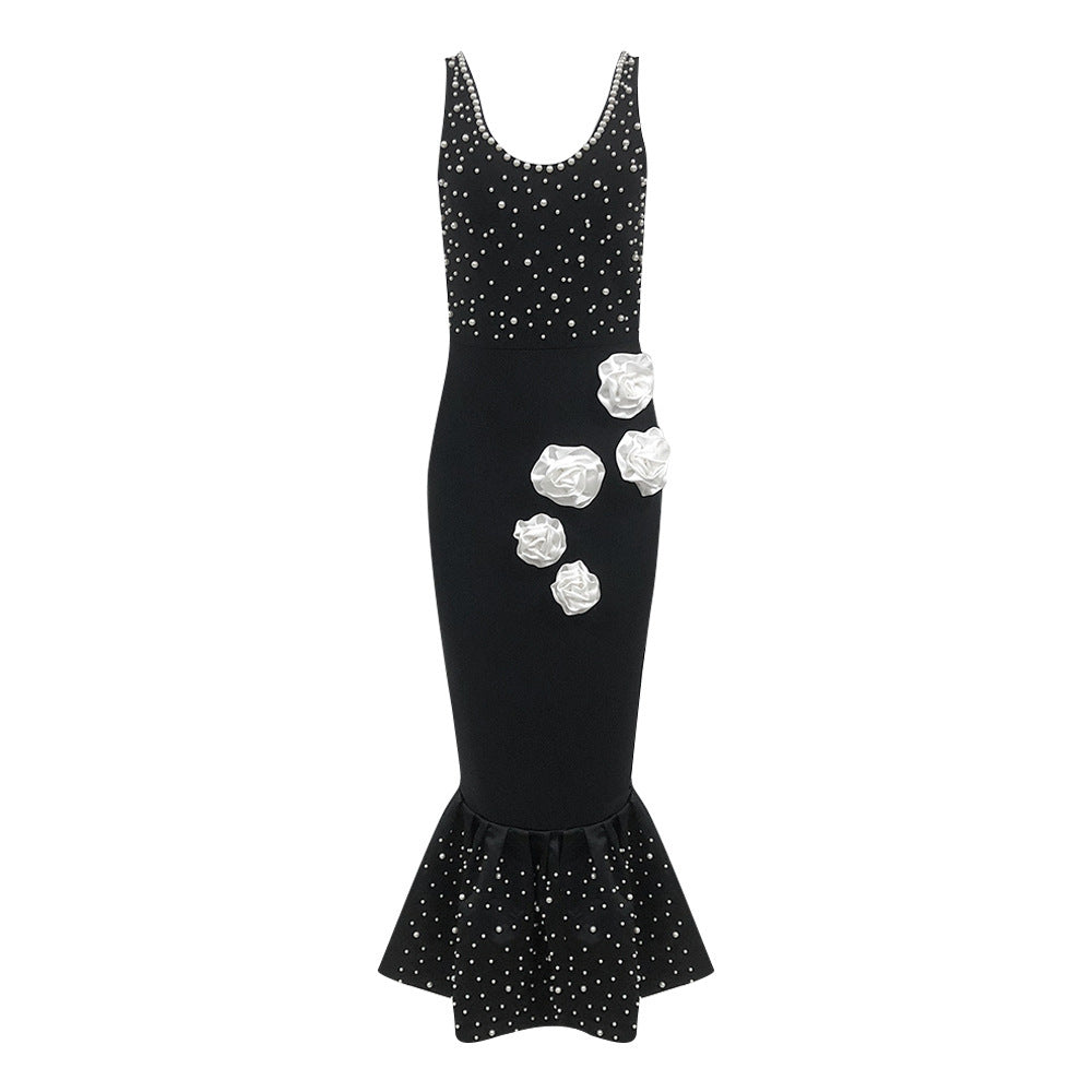 New Slim Beaded Flower Dress