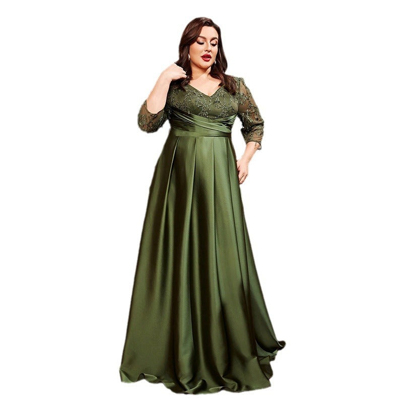 New Satin V-neck Long-sleeve Dress Slim Fit Sequin Women