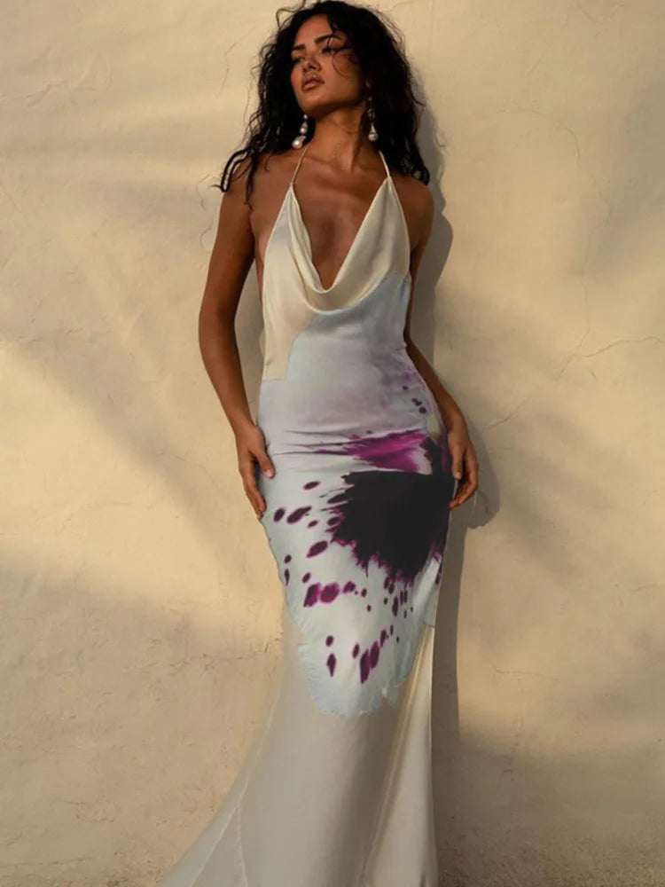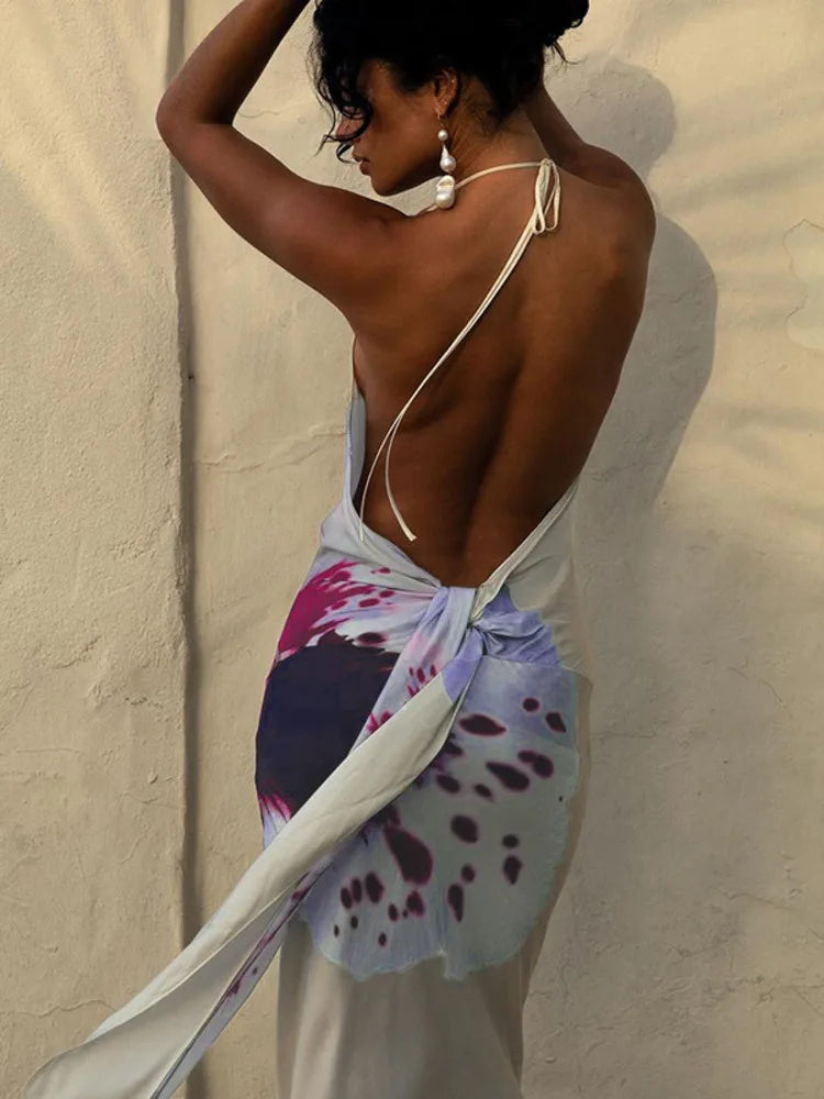 FashionSierra Spaghetti Strap Sleeveless Backless Long Floral Dress