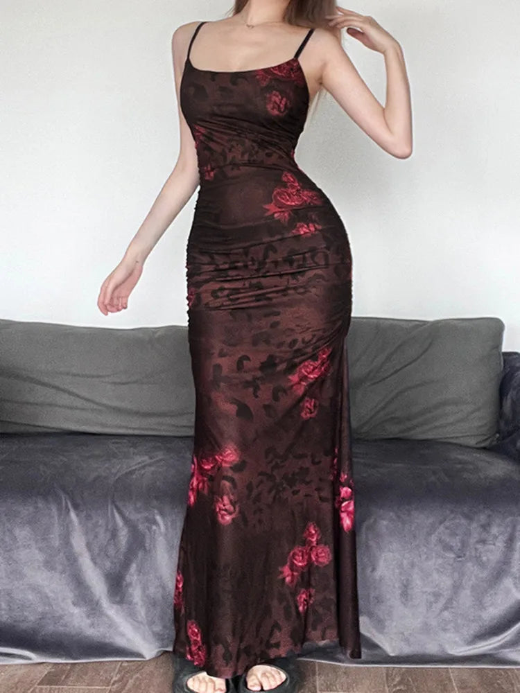 FashionSierra - Spaghetti Strap Print Maxi Dress Sleeveless Backless Floral Dress