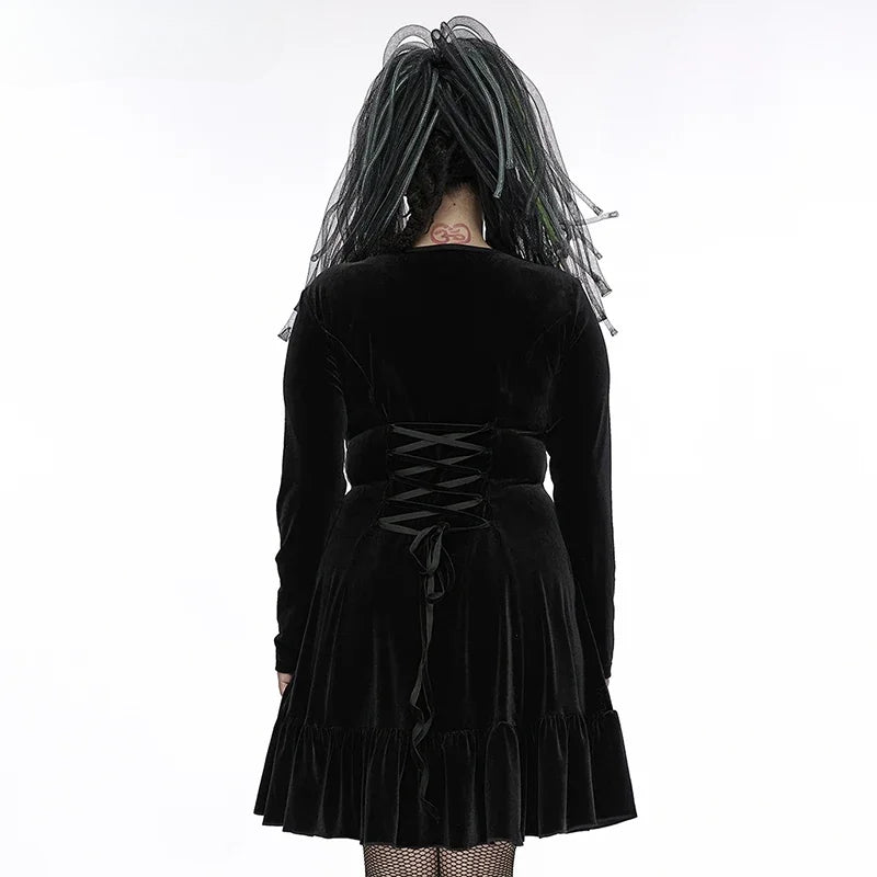 Gothic 3D Chains Long Sleeve Velvet Drawstring Dress