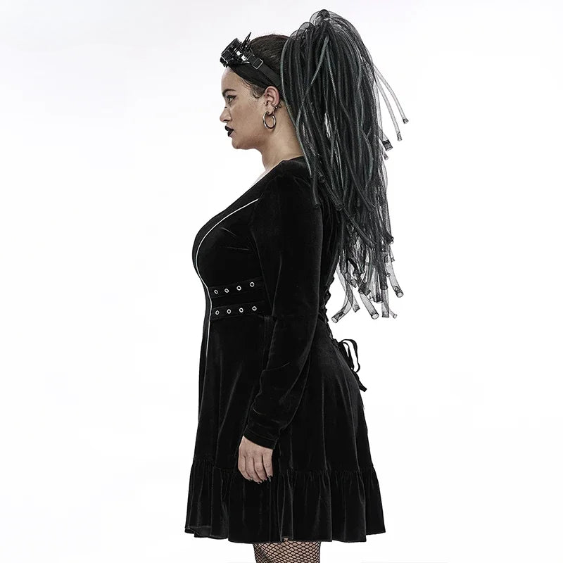 Gothic 3D Chains  Long Sleeve Velvet Drawstring Dress