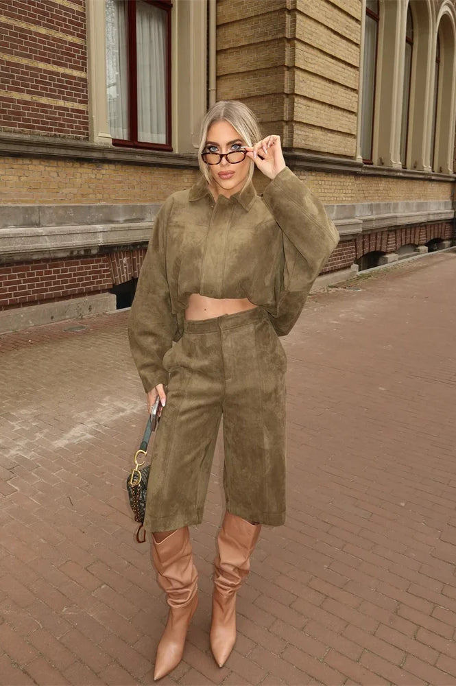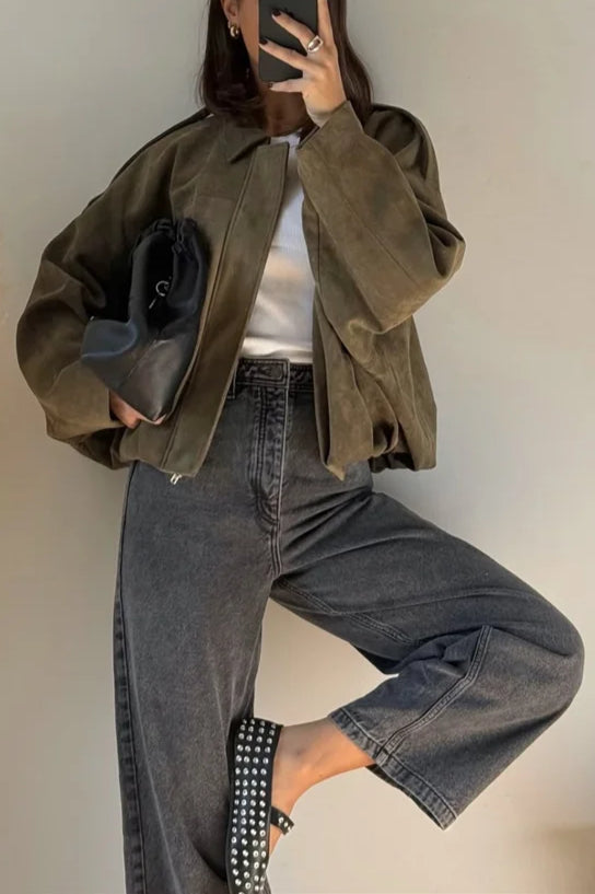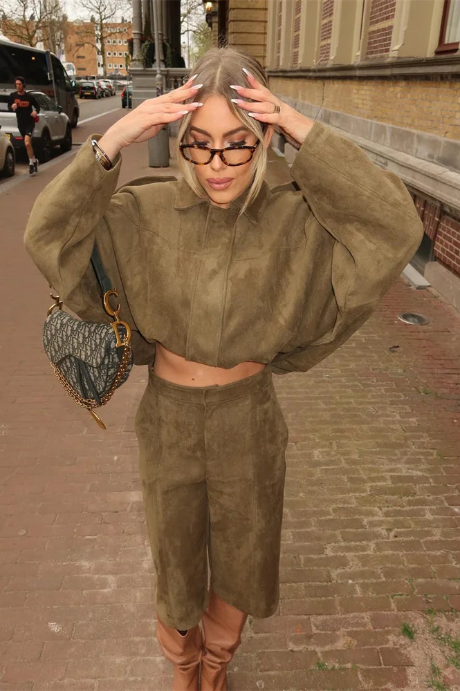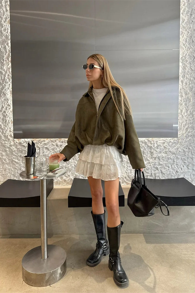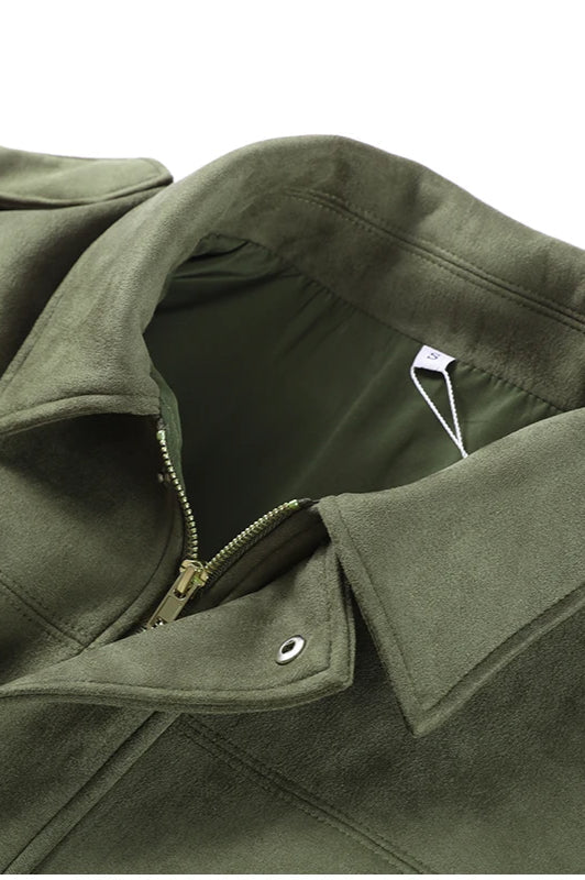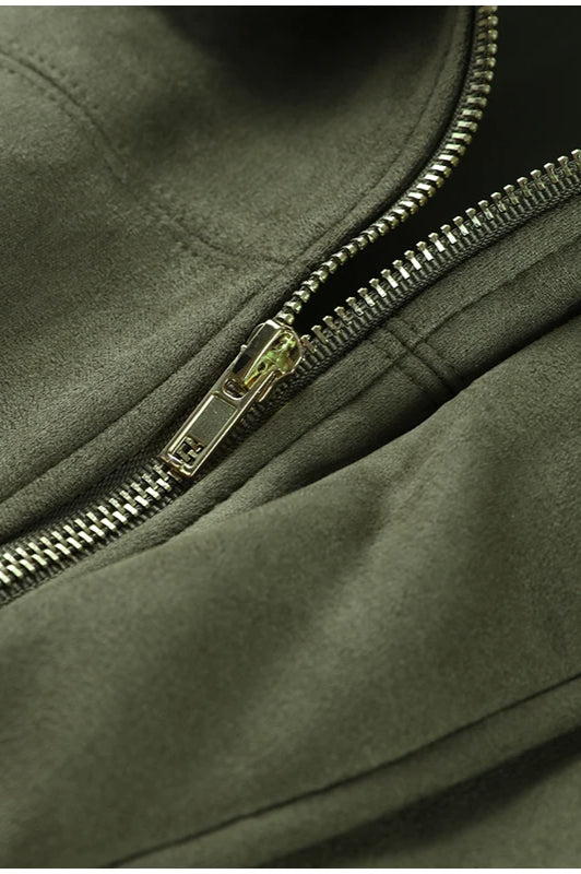 Suede Cropped Zip-Up Jacket