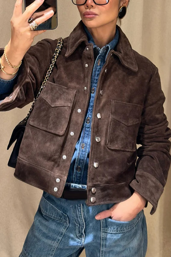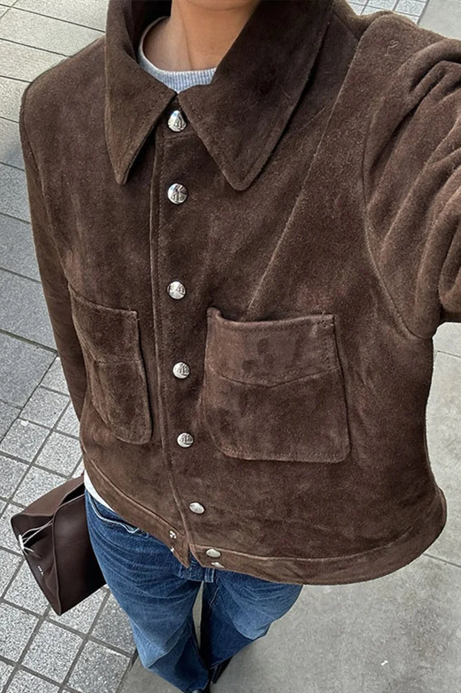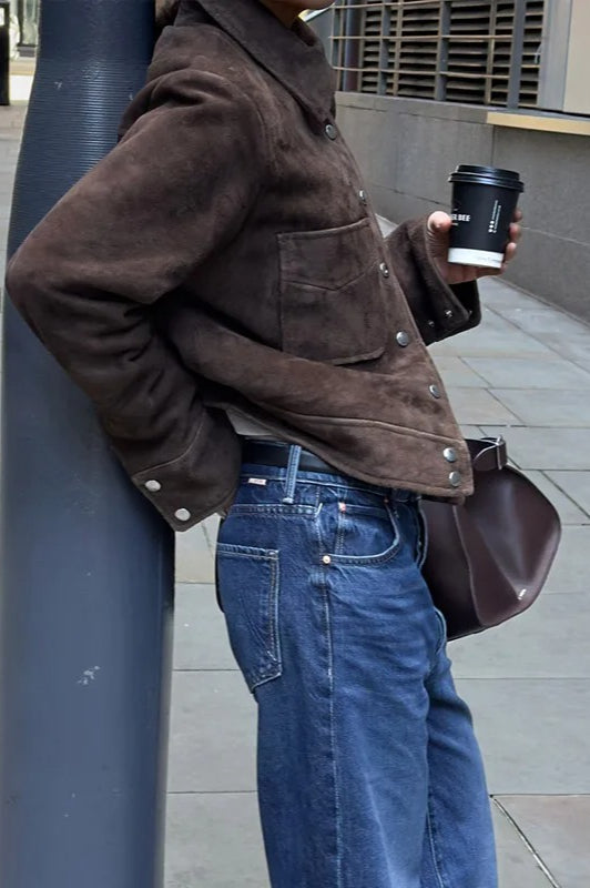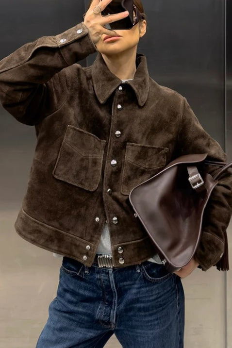 Brown Cropped Casual Jacket