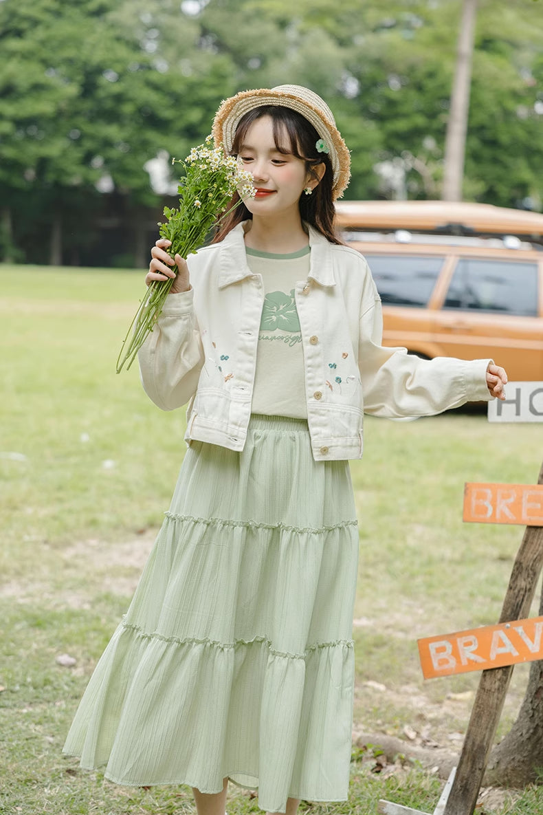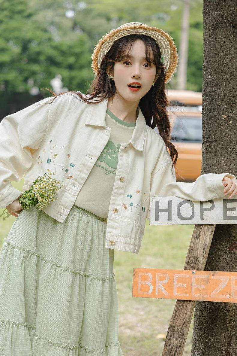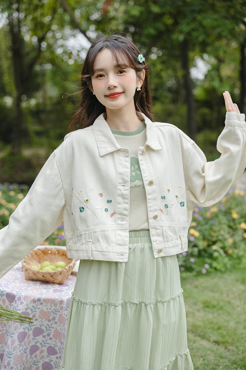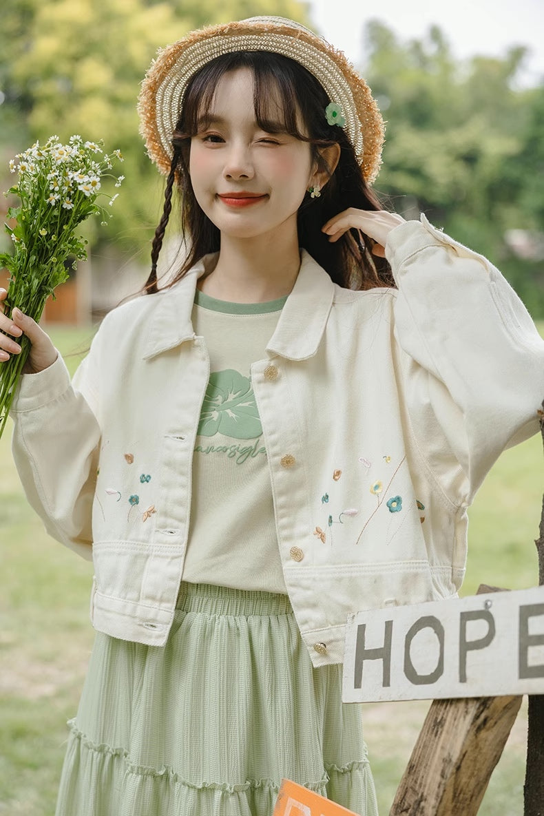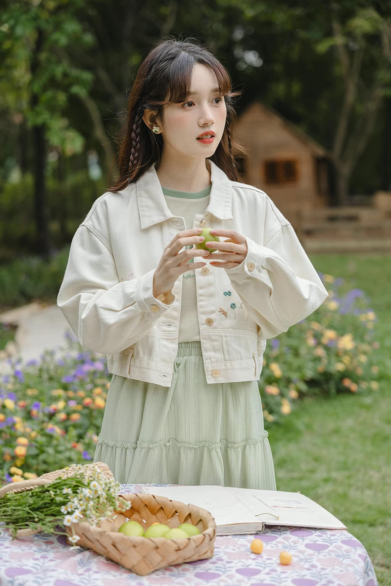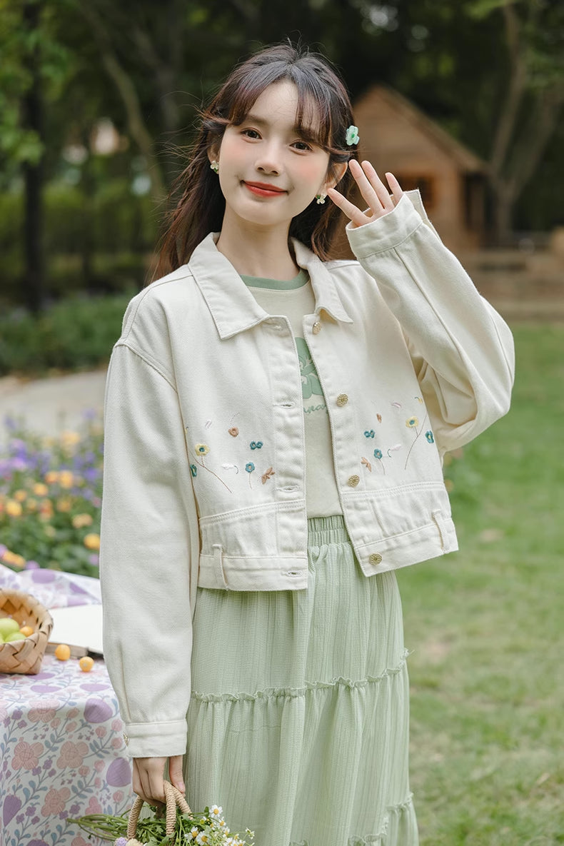 Flowers In The Wind Denim Jacket (Cream)