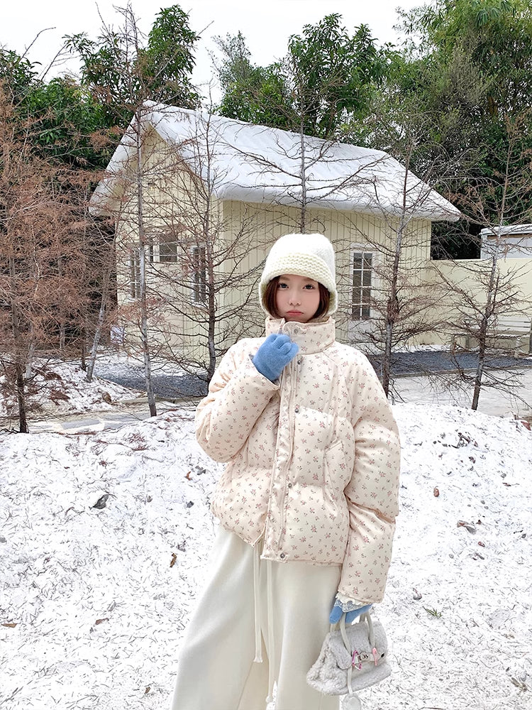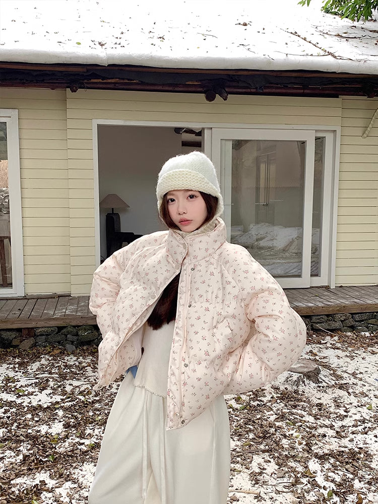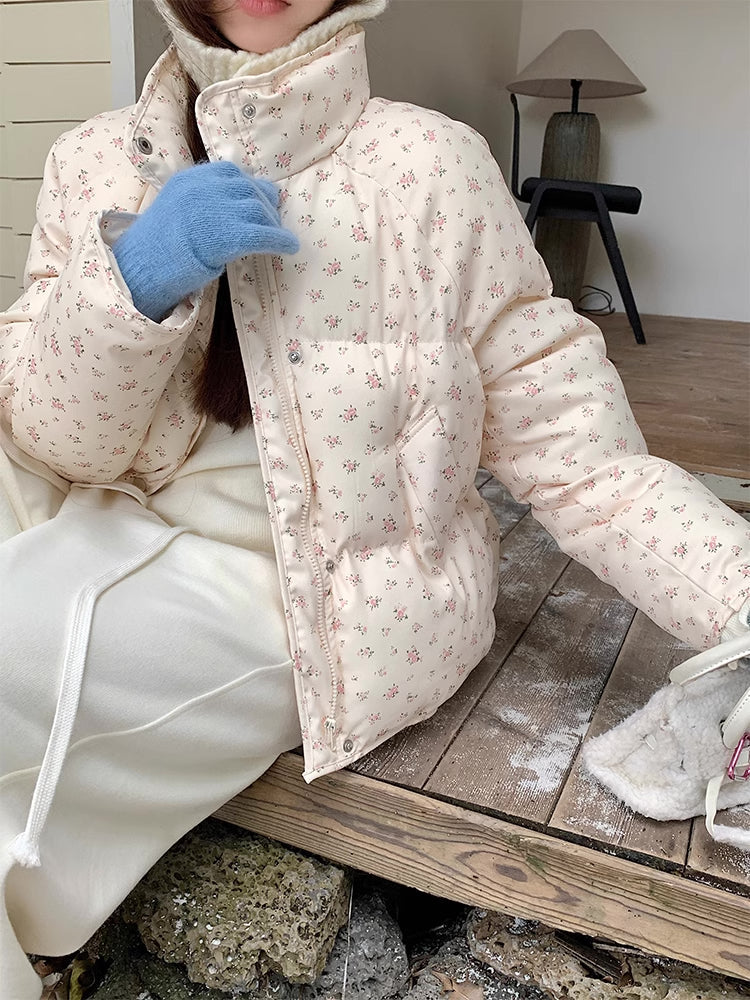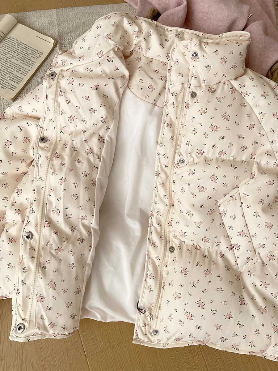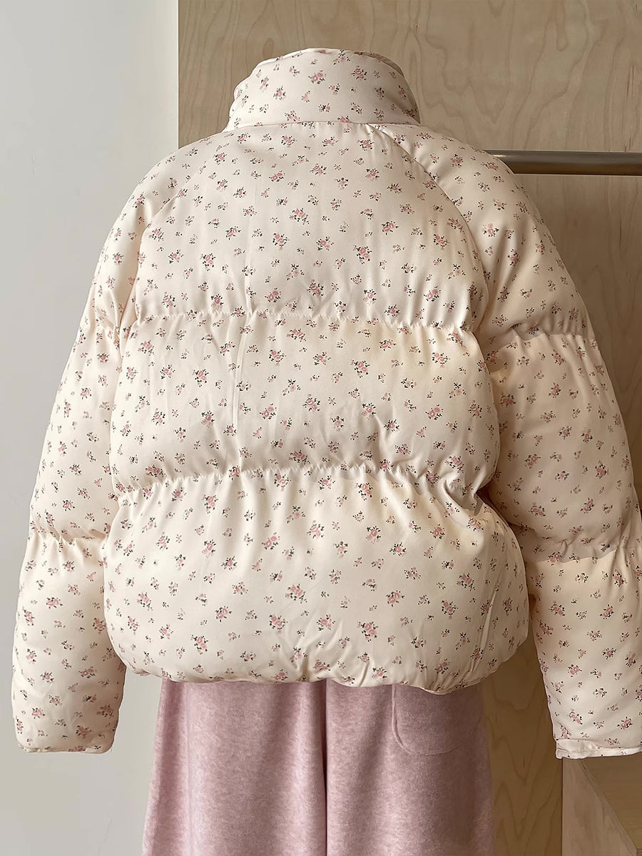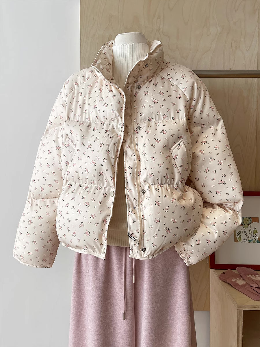 Ditsy Floral Puffer Jacket (Cream/Pink)
