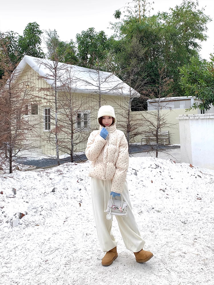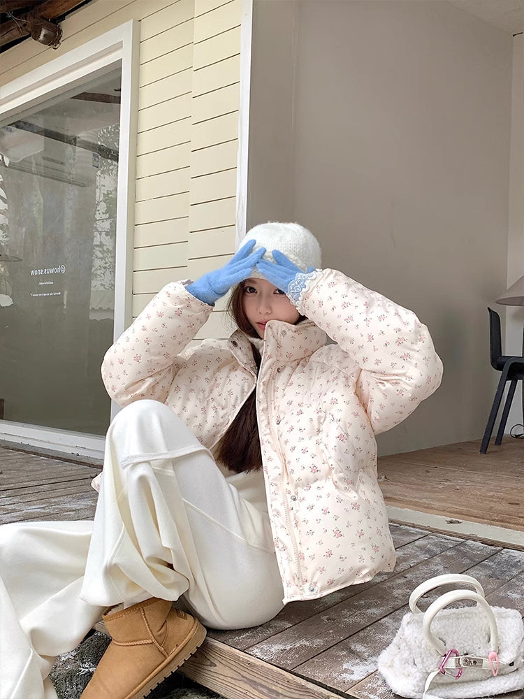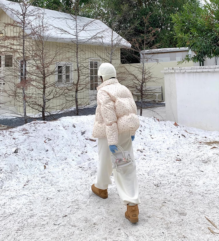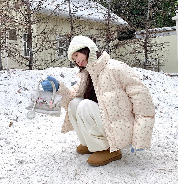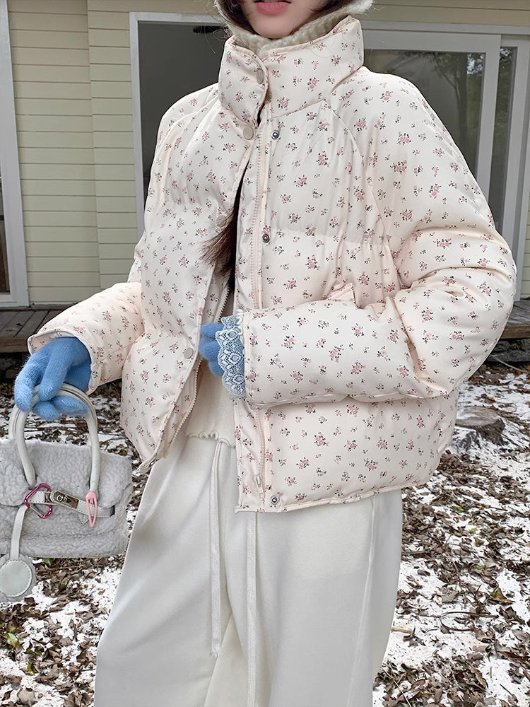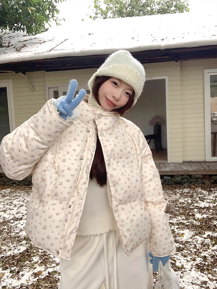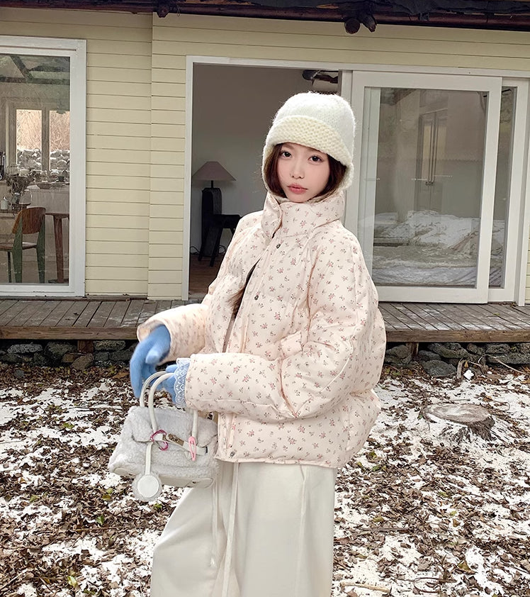 Ditsy Floral Puffer Jacket (Cream/Pink)