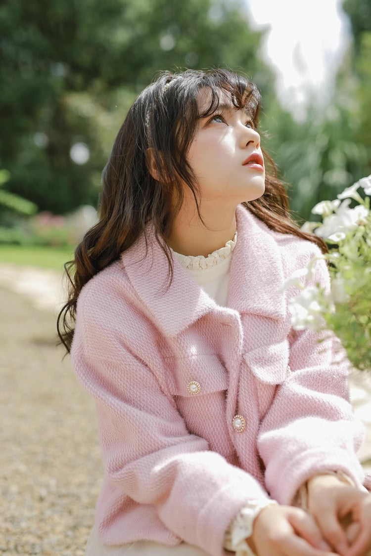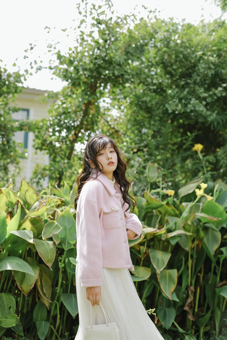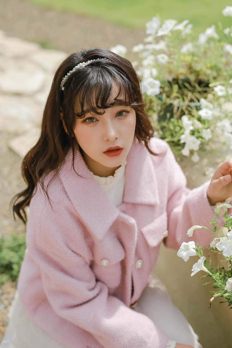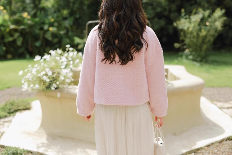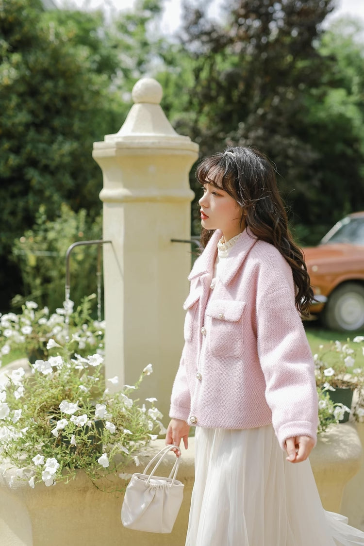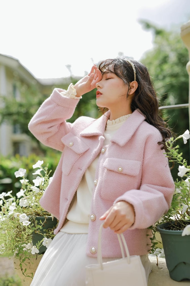 Faux short-hair mink jacket with a button-up front, collar, chest pockets and slightly cropped length.