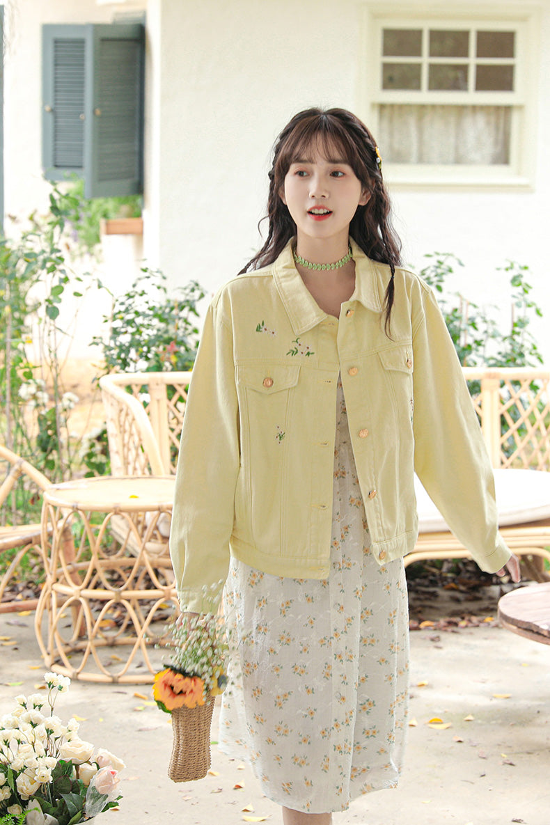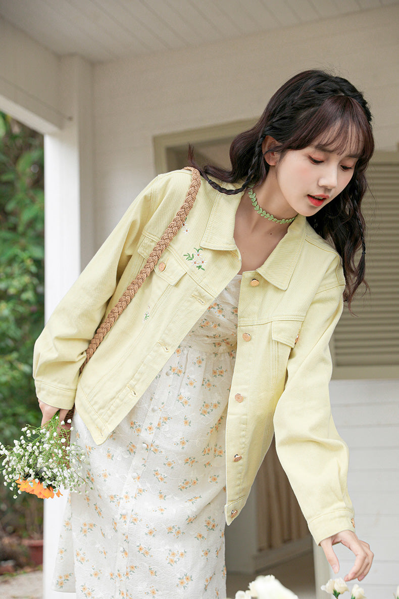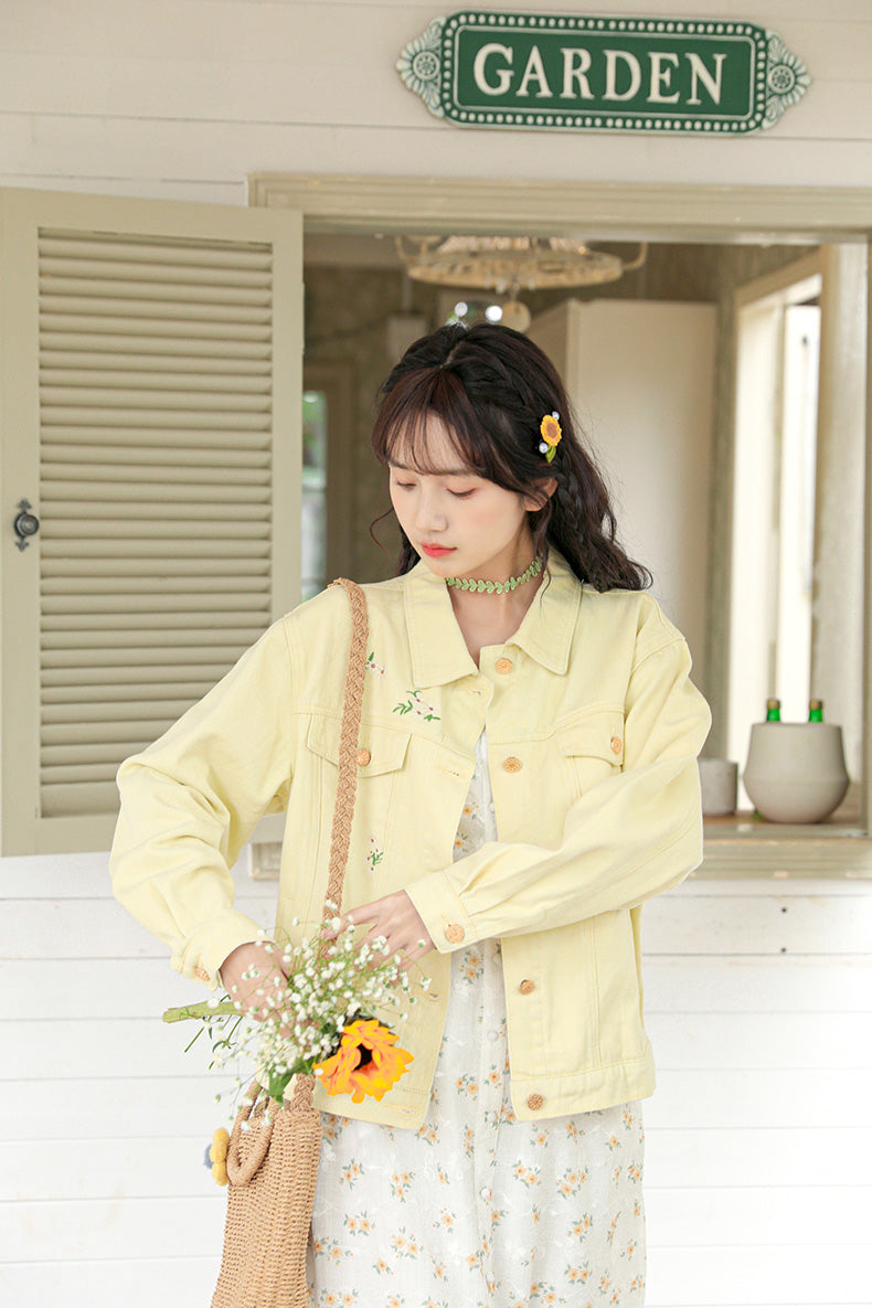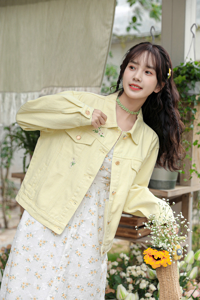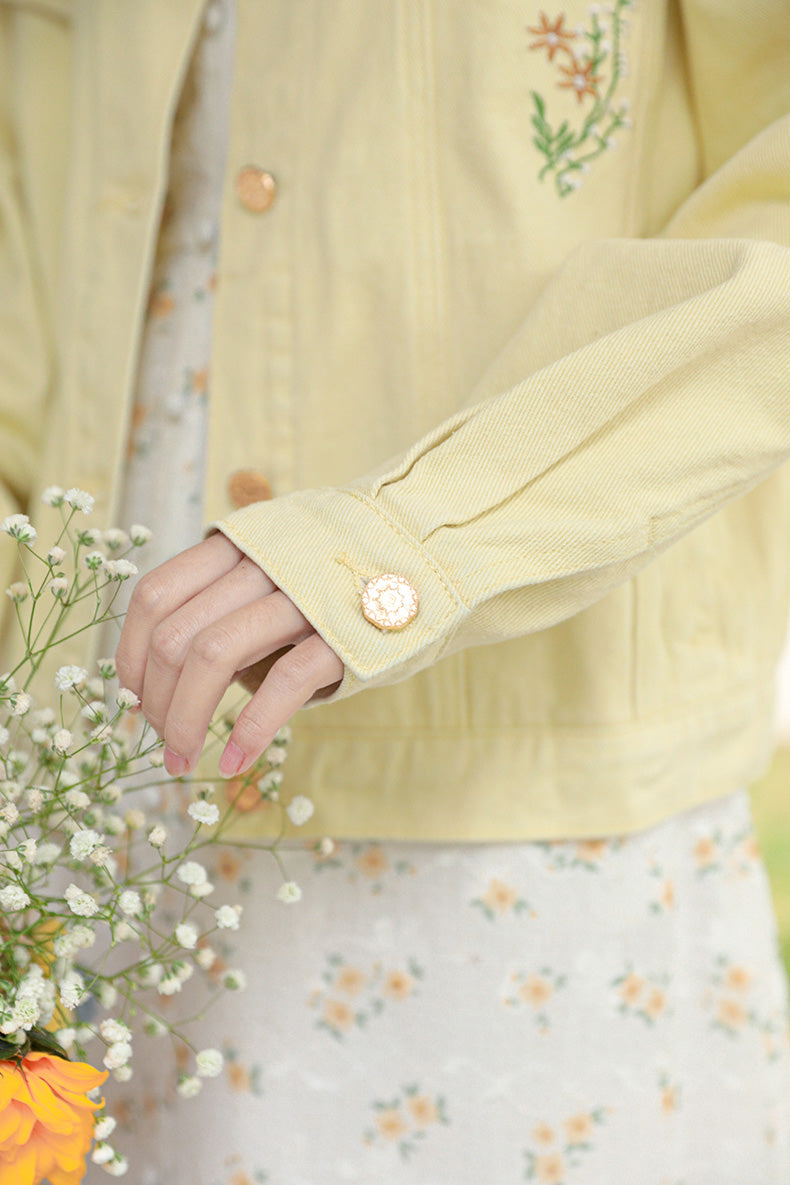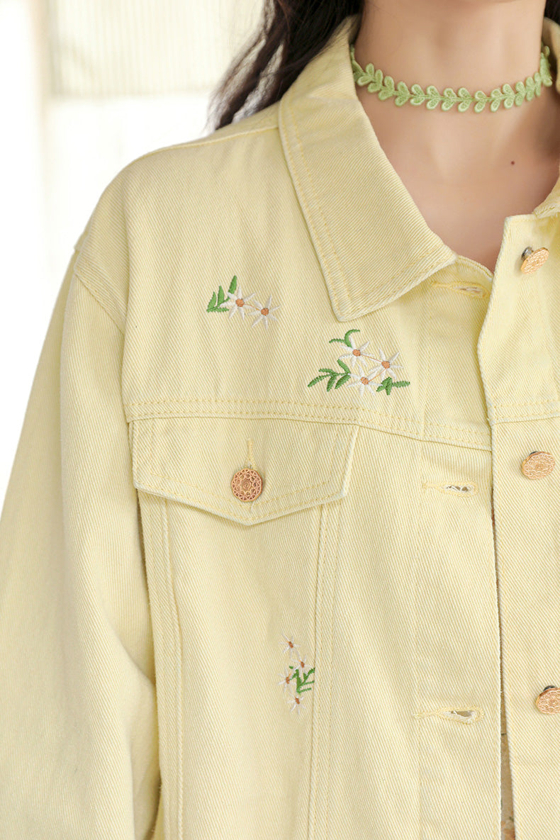 Daisy Garden Embroidered Denim Jacket (Yellow)