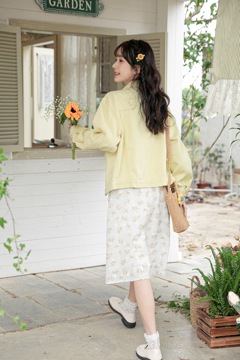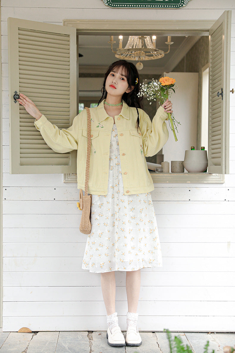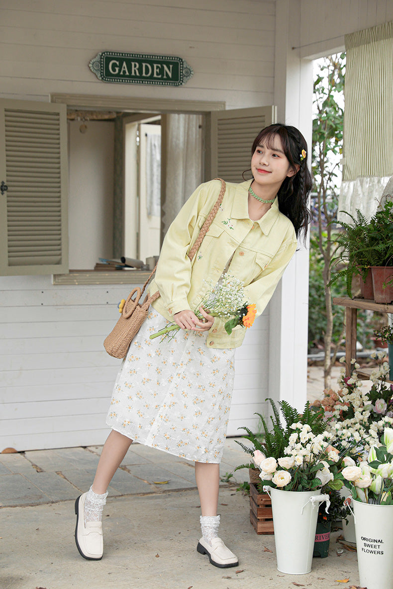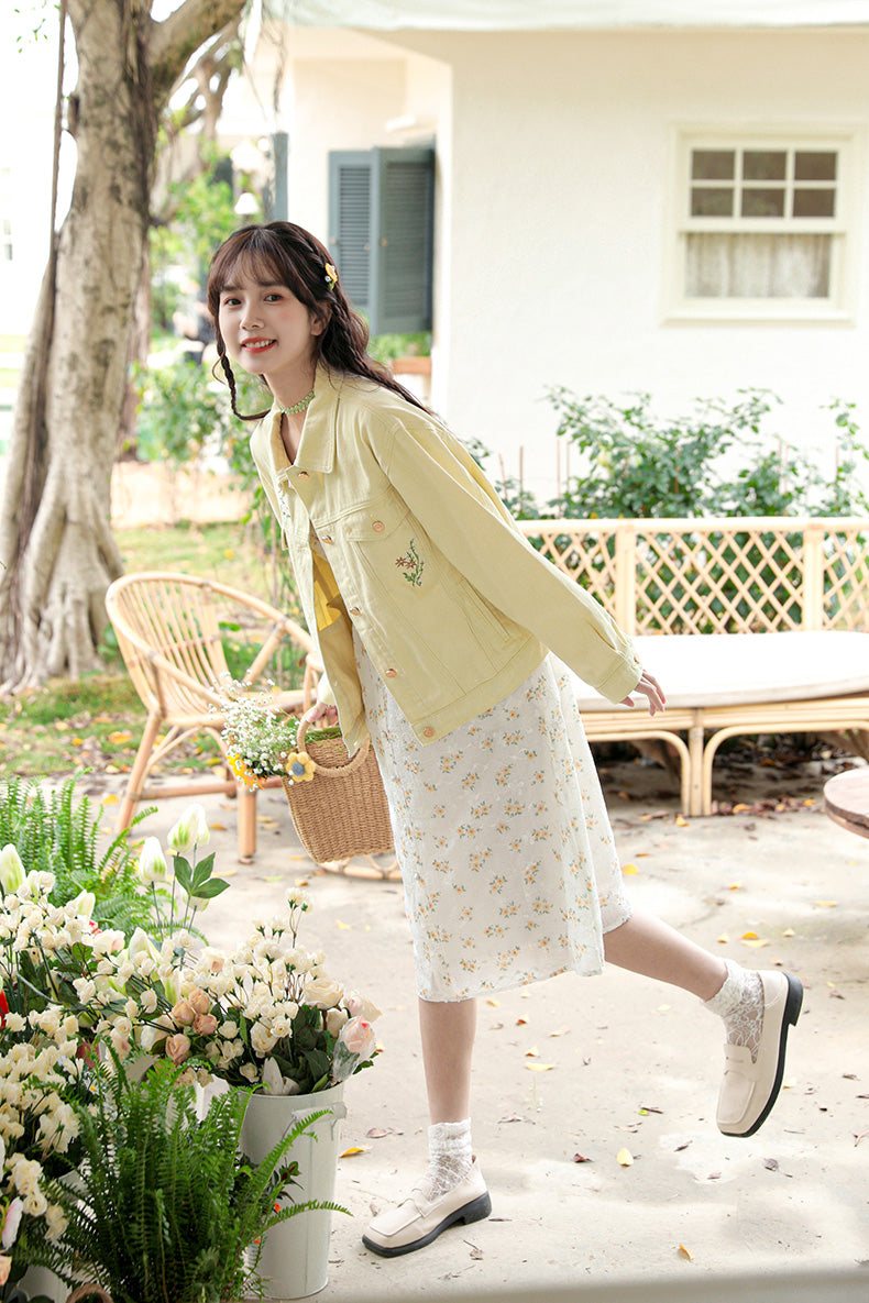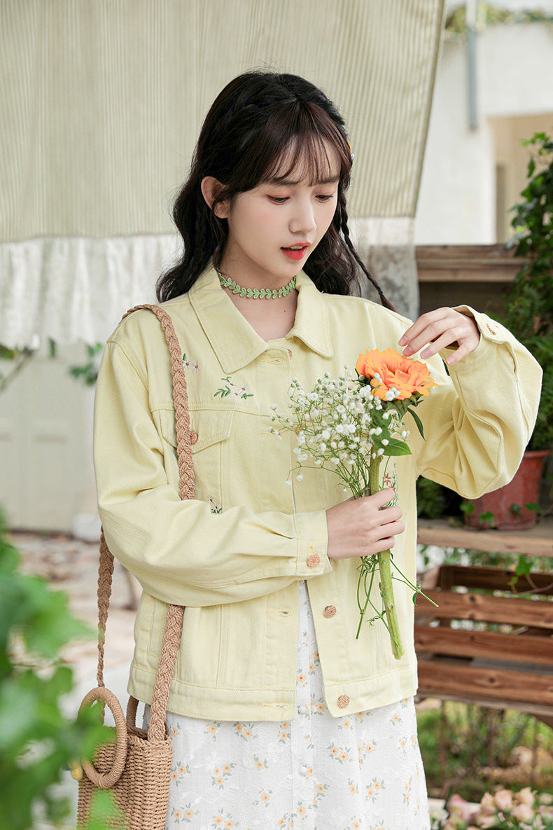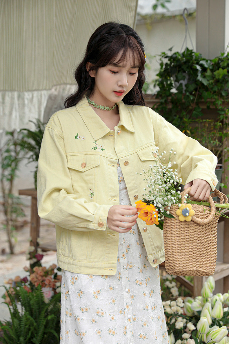 Daisy Garden Embroidered Denim Jacket (Yellow)