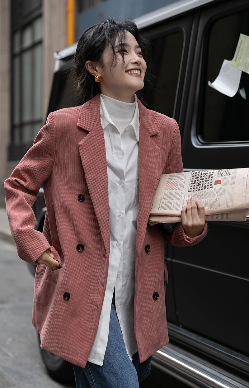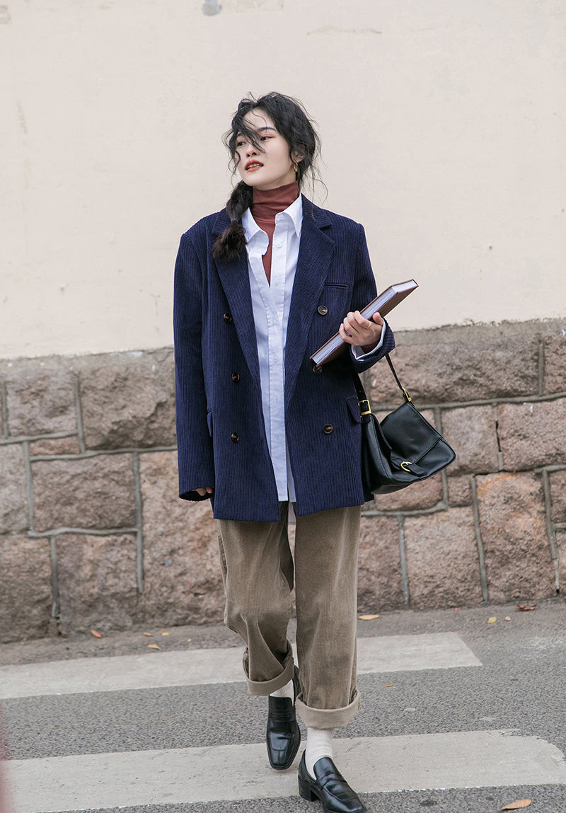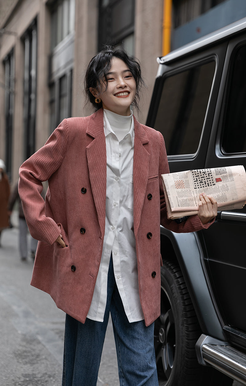 Corduroy Double Breasted Blazer Jacket (7 Colors)