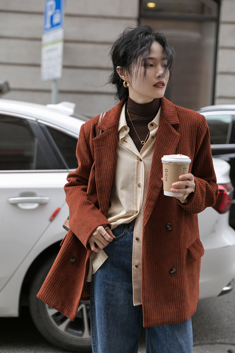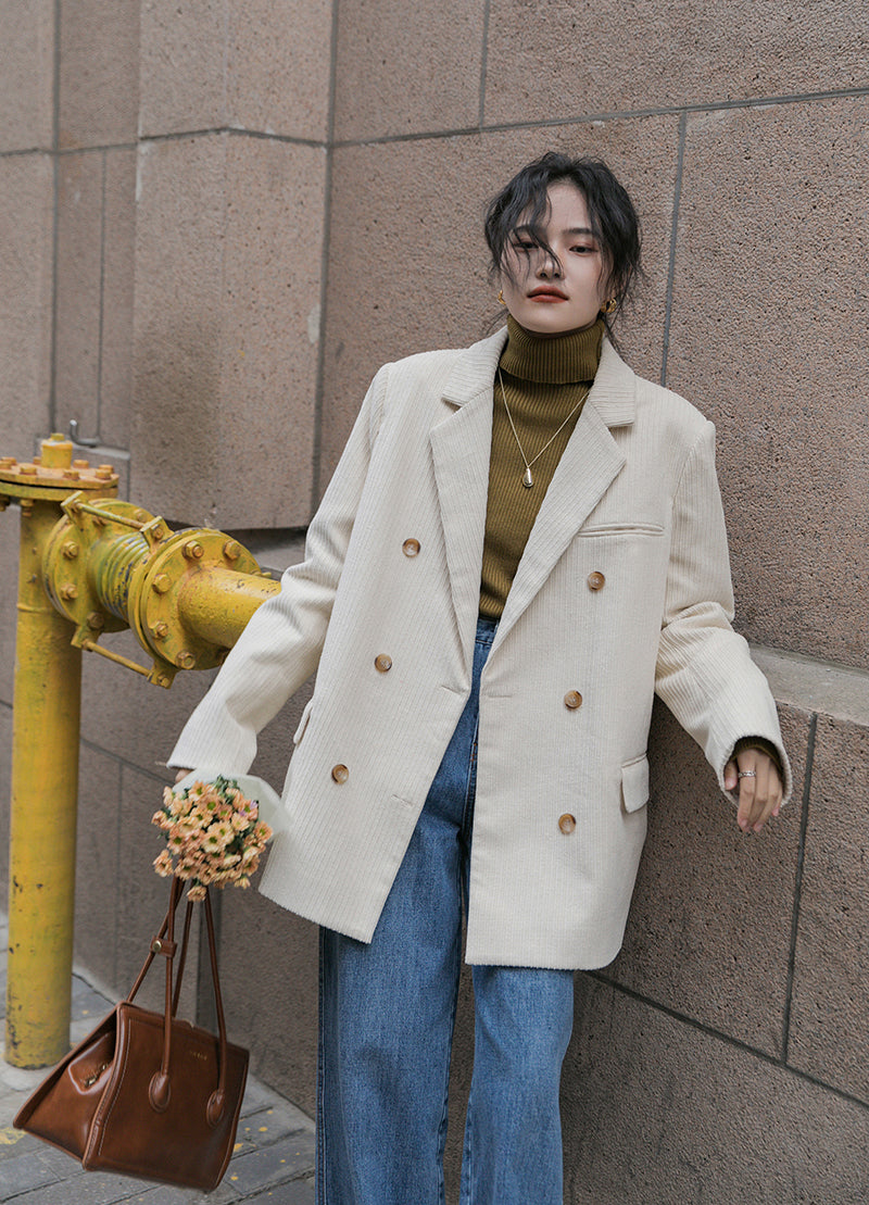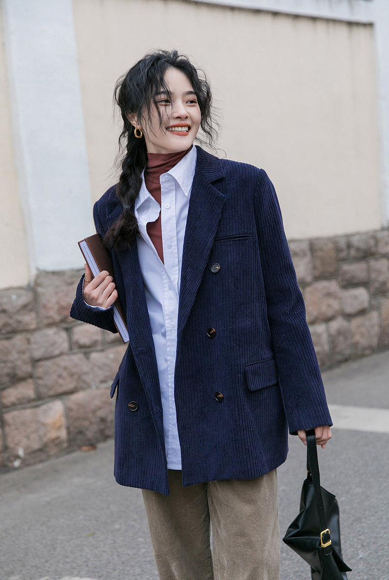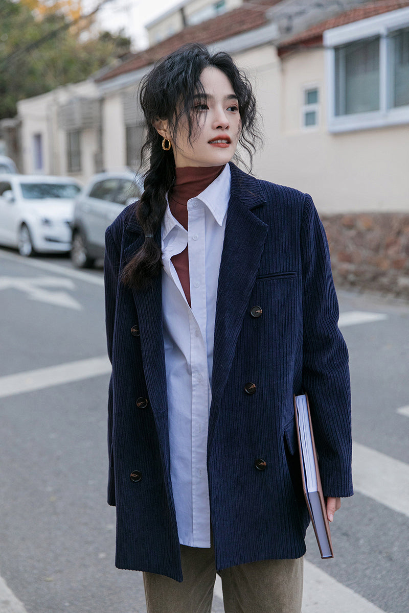 Corduroy Double Breasted Blazer Jacket (7 Colors)