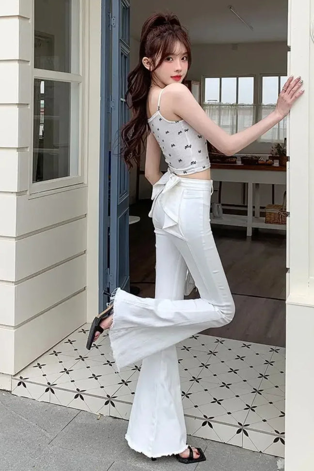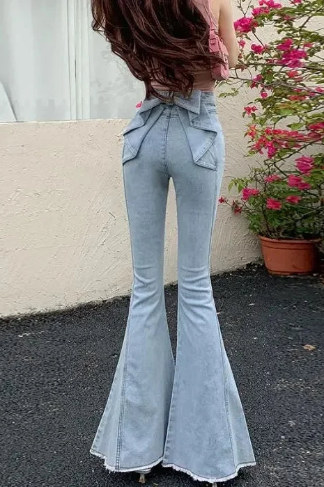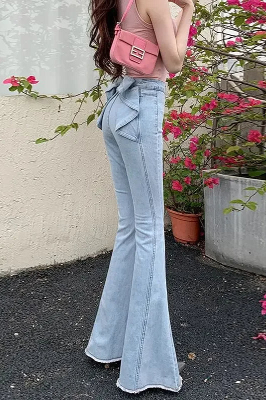 High Waist Butterfly Knot Flare Jeans