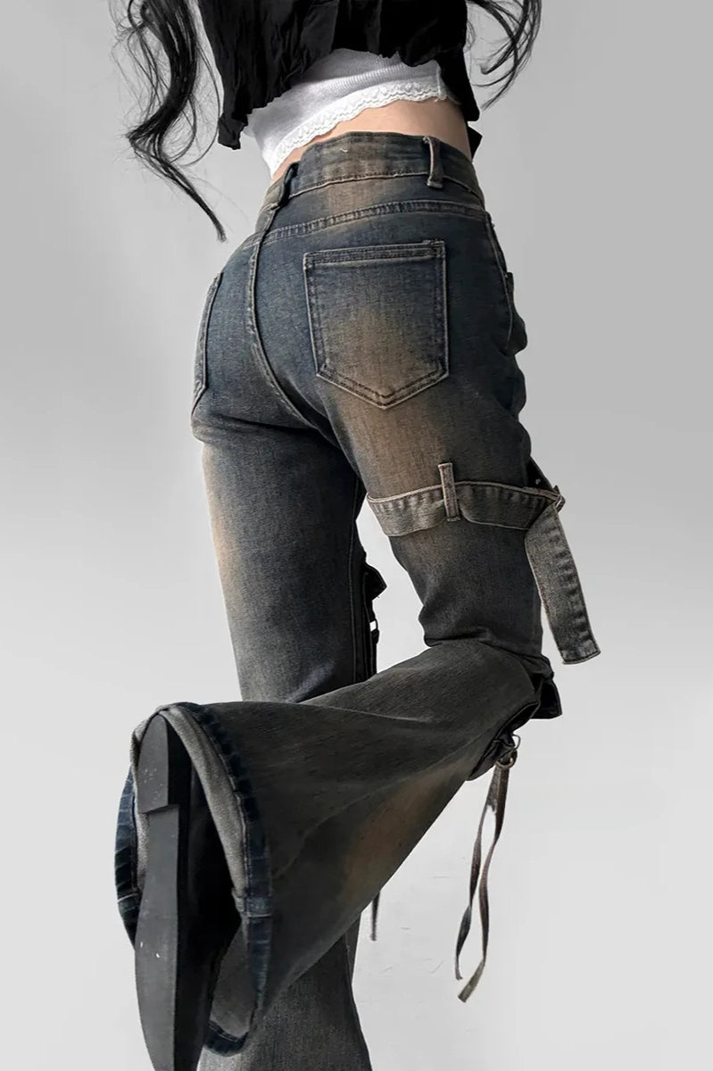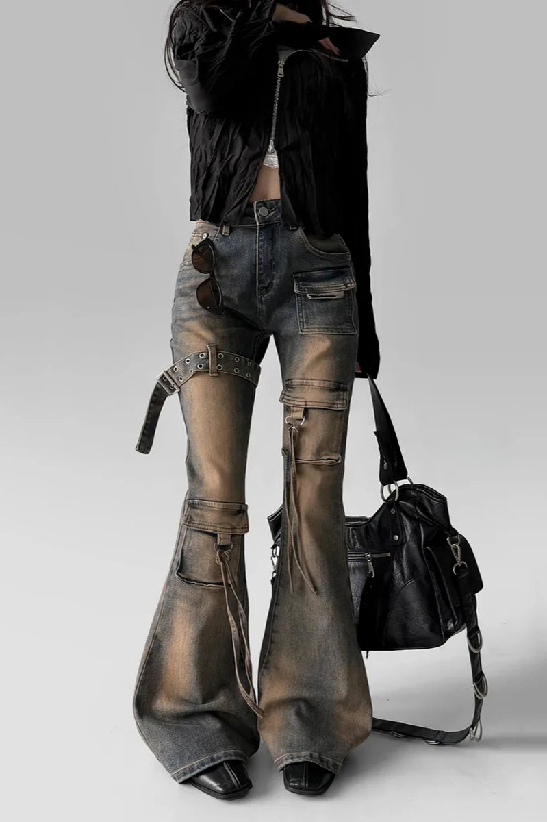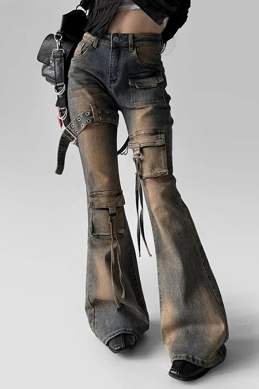 Low Waist Flare Cargo Jeans