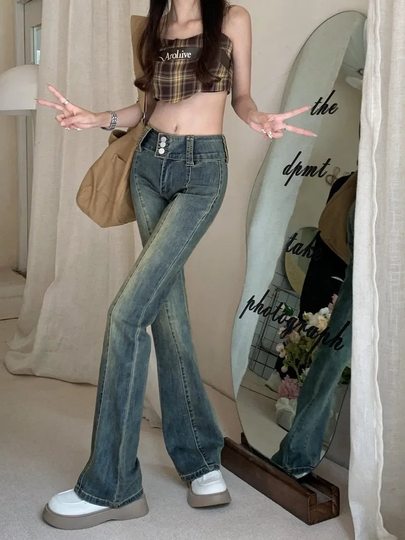Vintage Brown Low Rise Flare Y2k Brown Long Baggy Denim Bottom