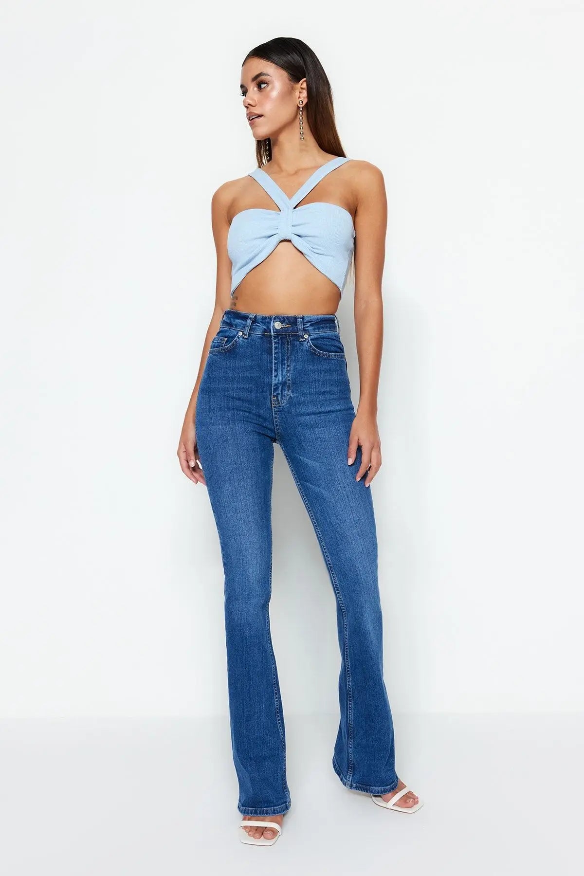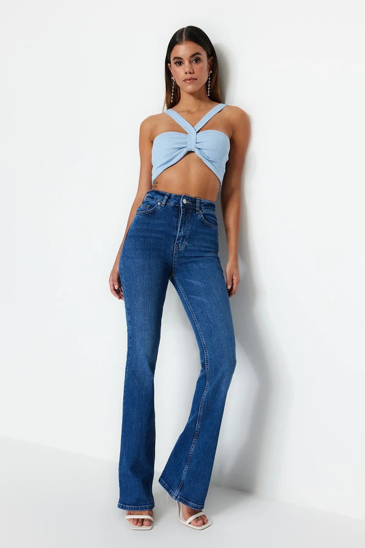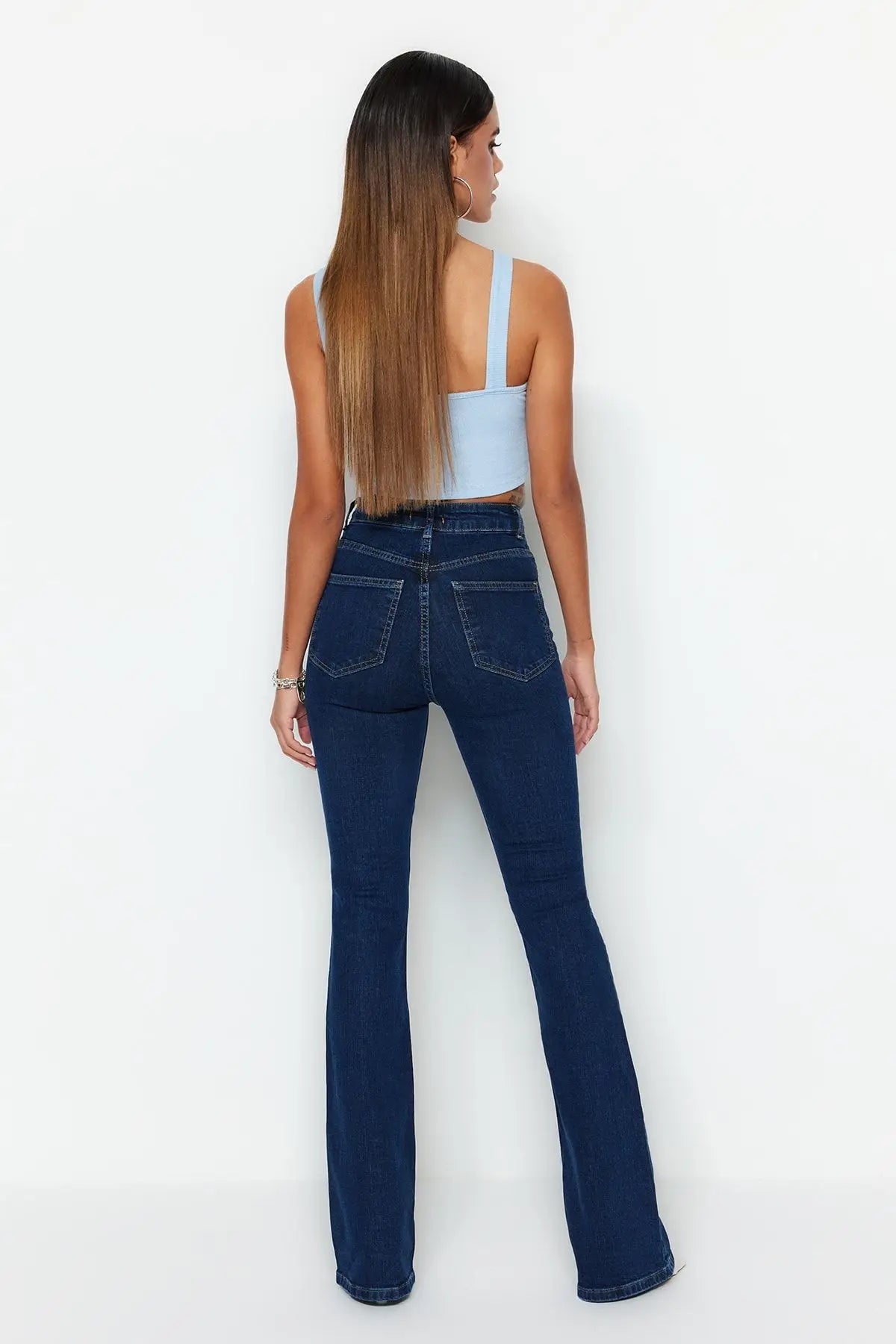 Ce jean combine confort et légère élasticité pour une coupe skinny flatteuse. La taille haute et la coupe évasée ajoutent une touche de style tout en offrant un maintien optimal, idéal pour toutes les saisons.