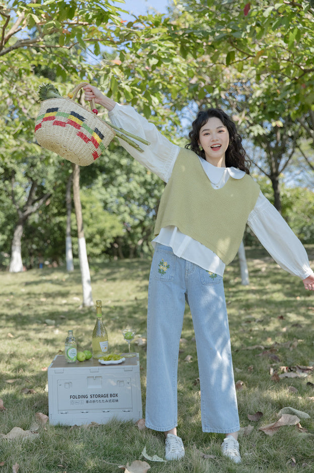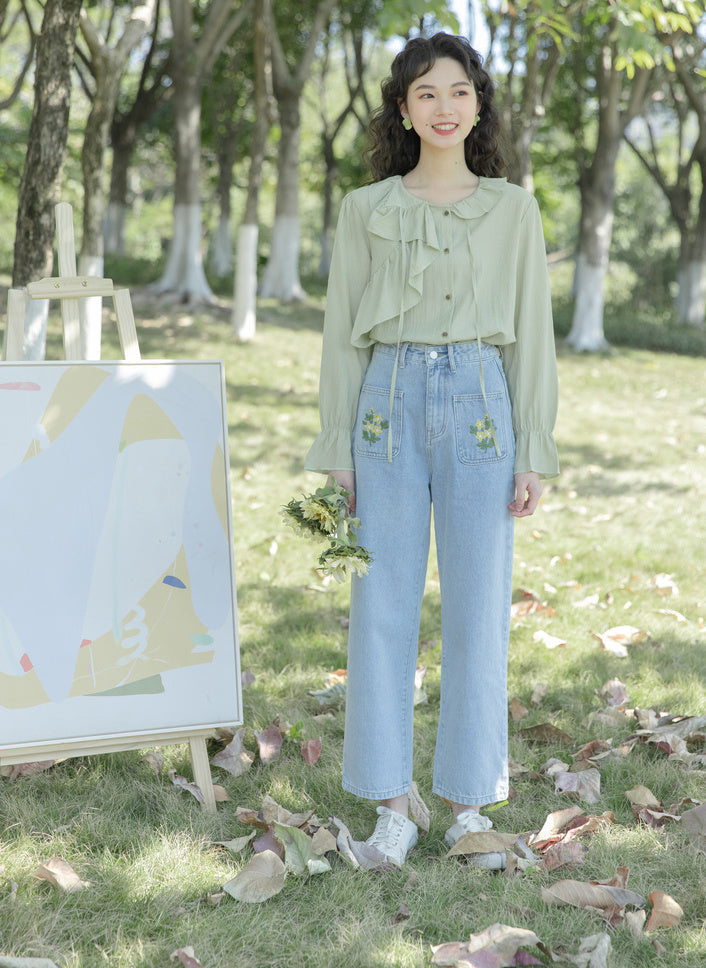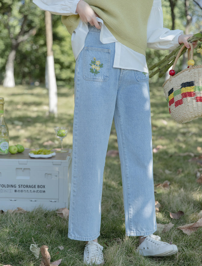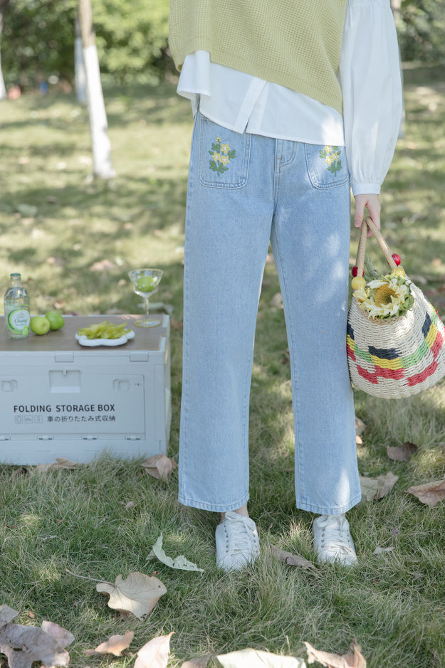 Star Daisy Embroidered Pocket Jeans (Light Denim)