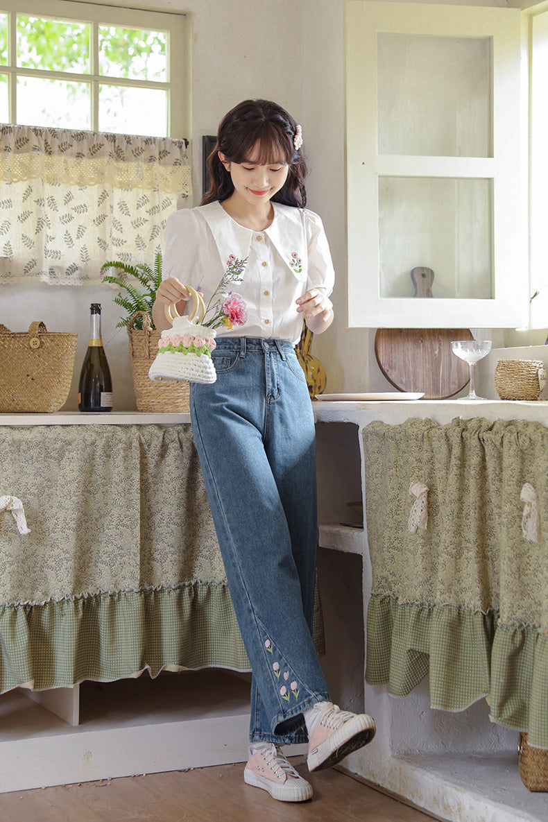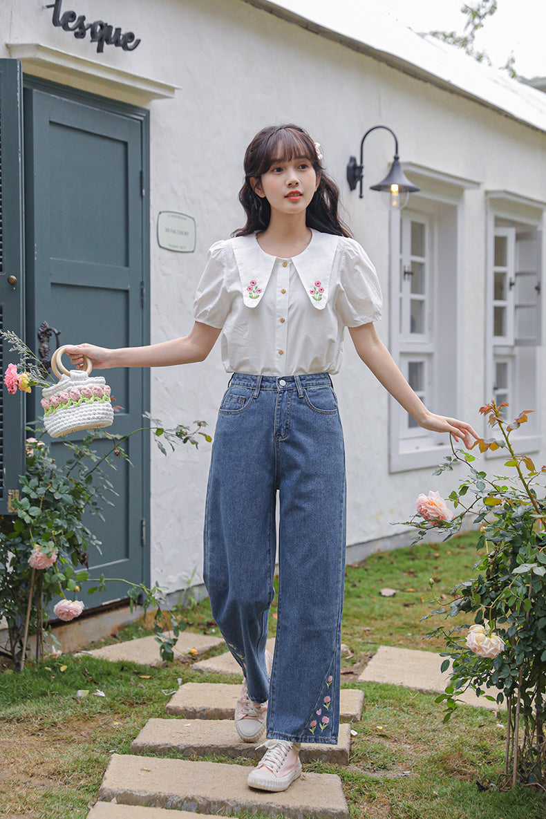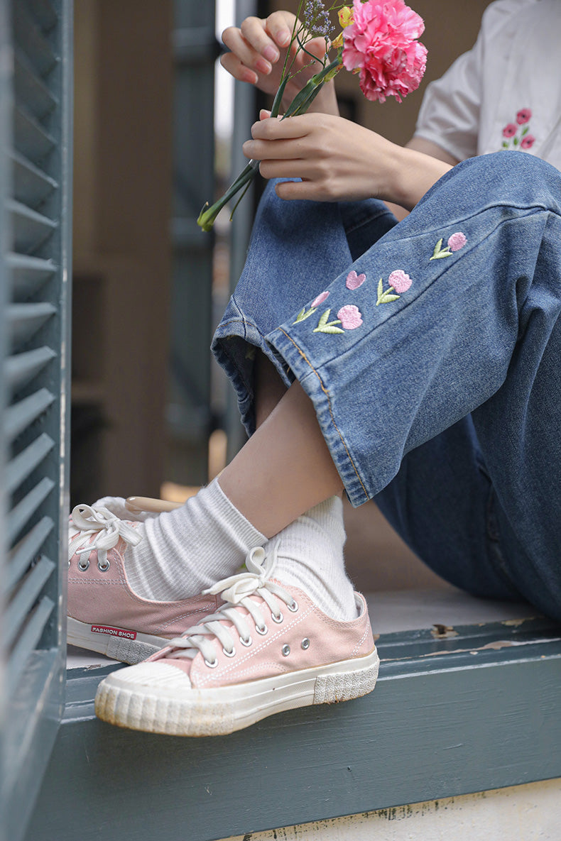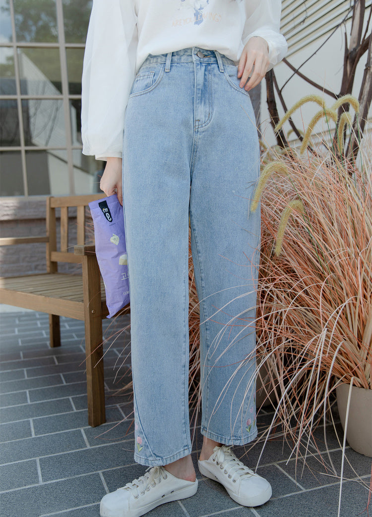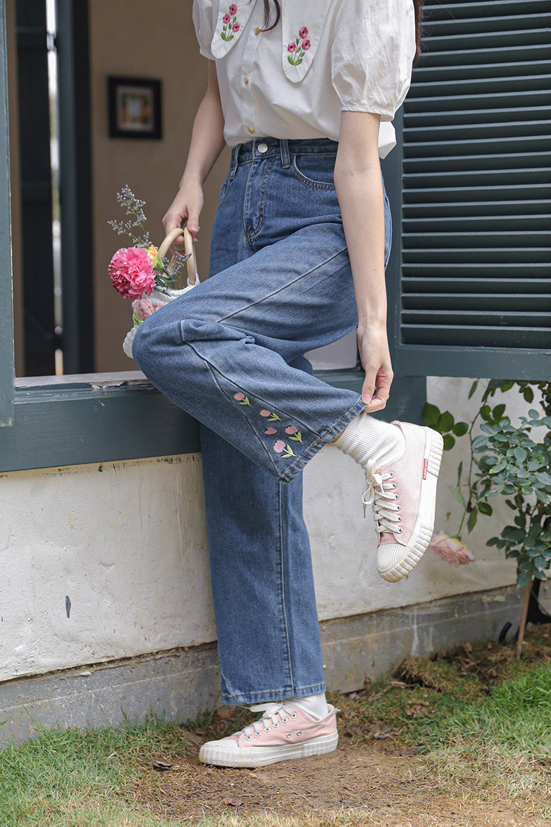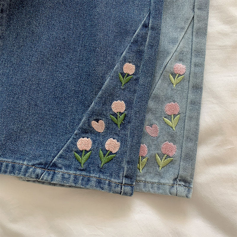 Tulip Tips Embroidered Jeans (2 Colors)