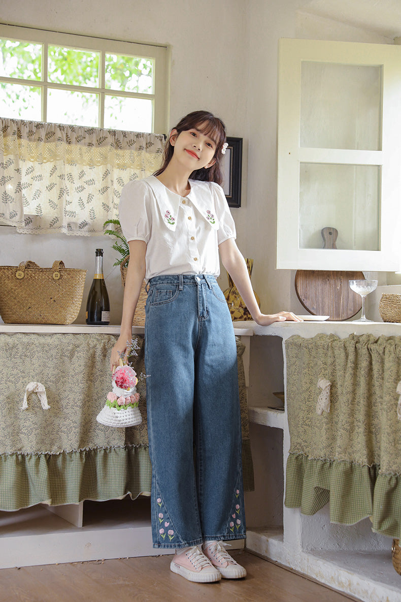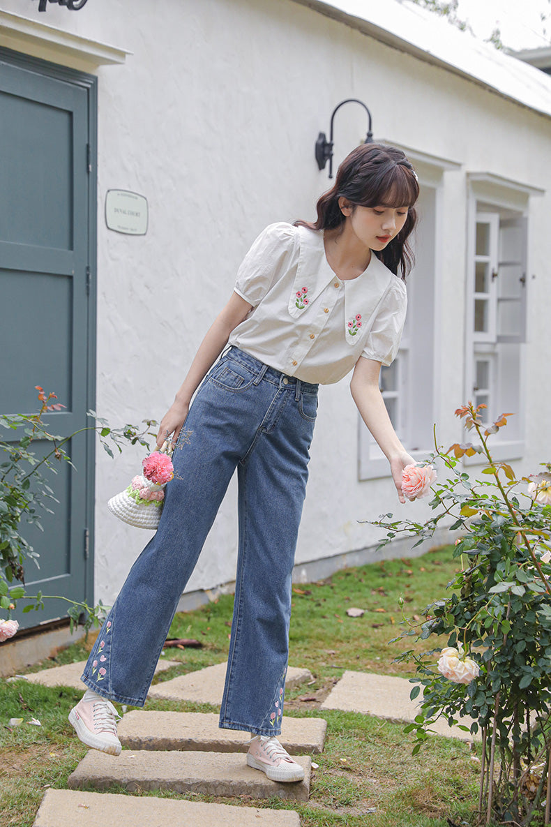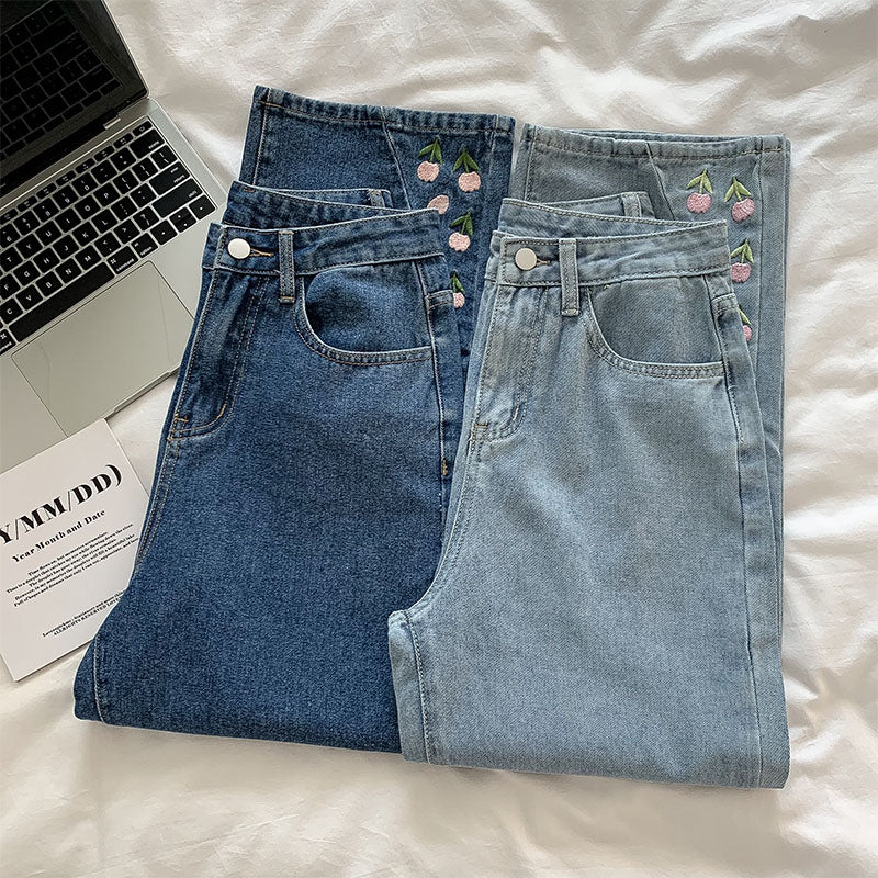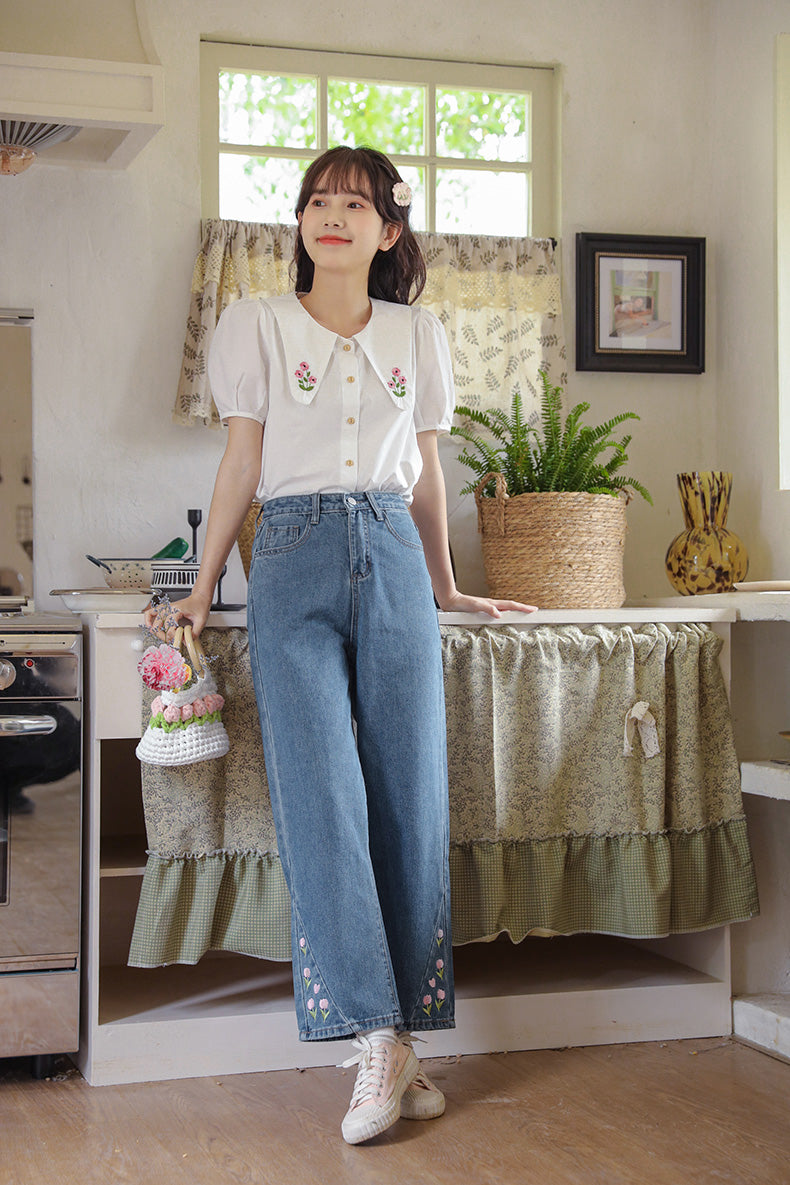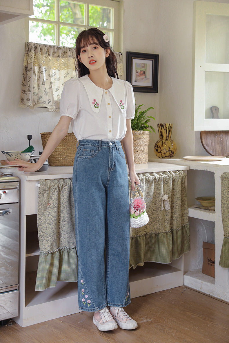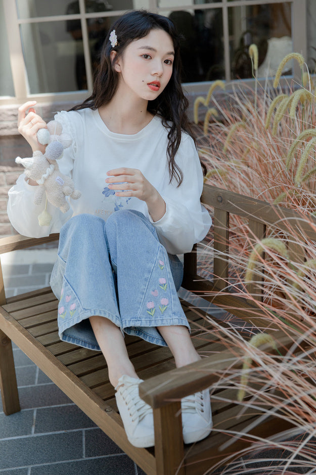 Tulip Tips Embroidered Jeans (2 Colors)