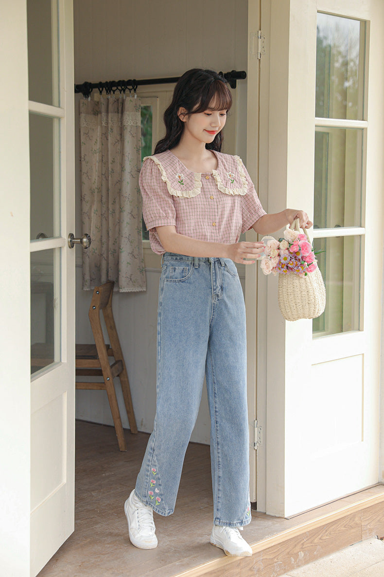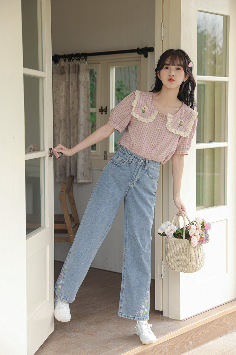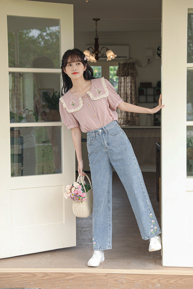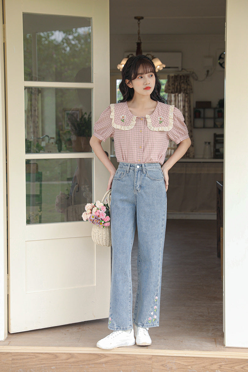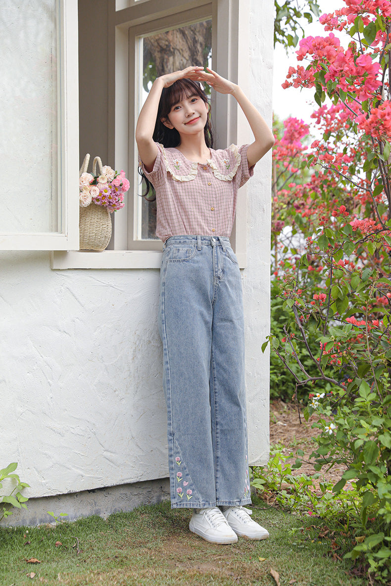 Tulip Tips Embroidered Jeans (2 Colors)