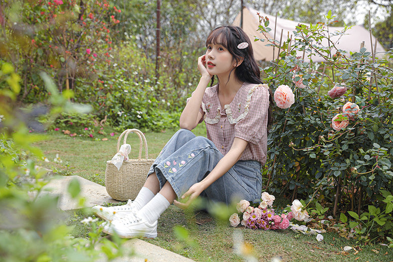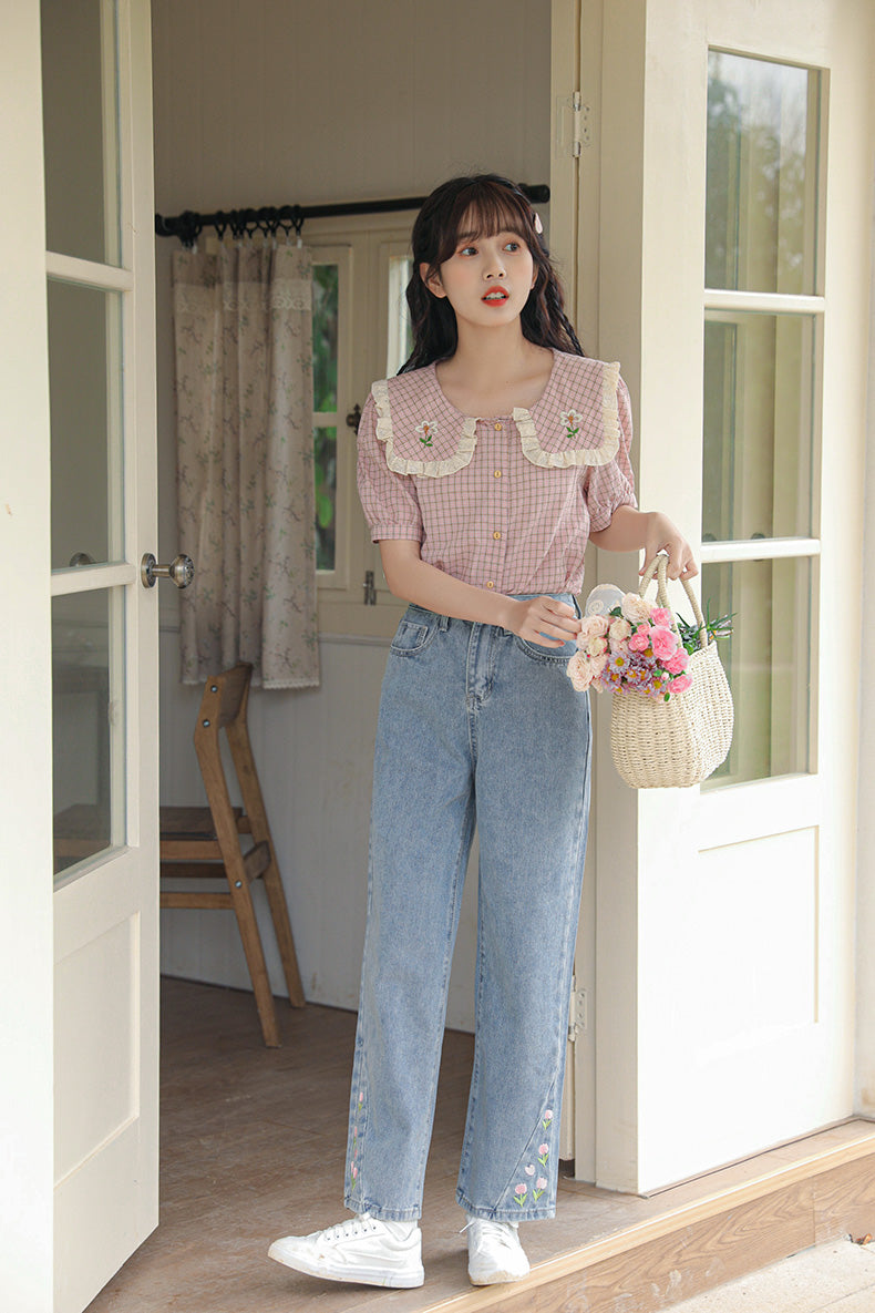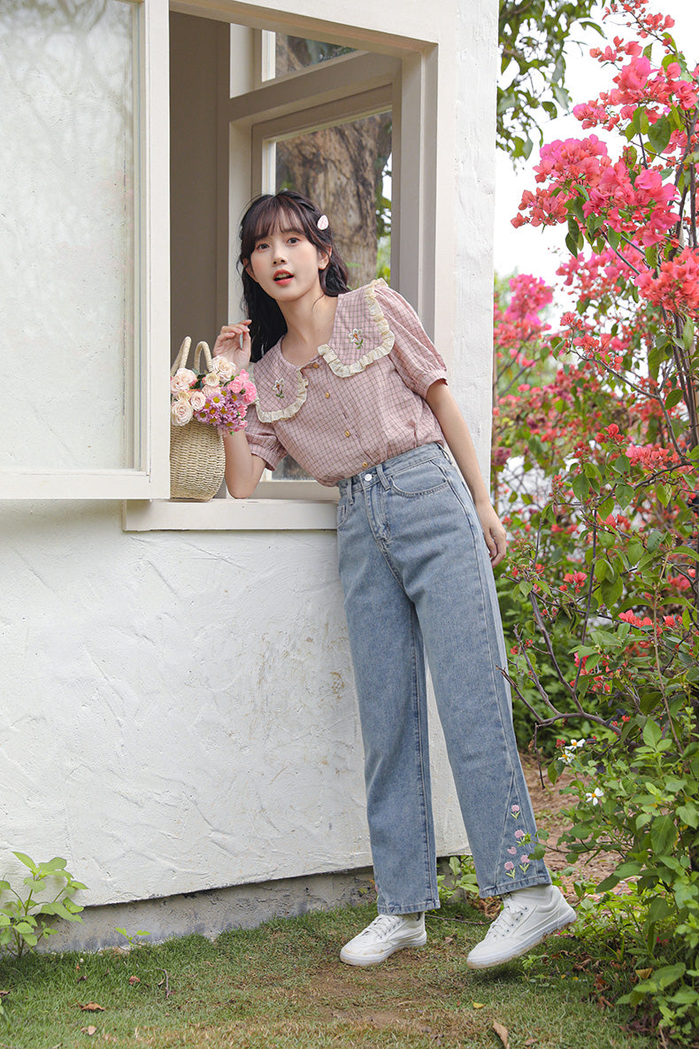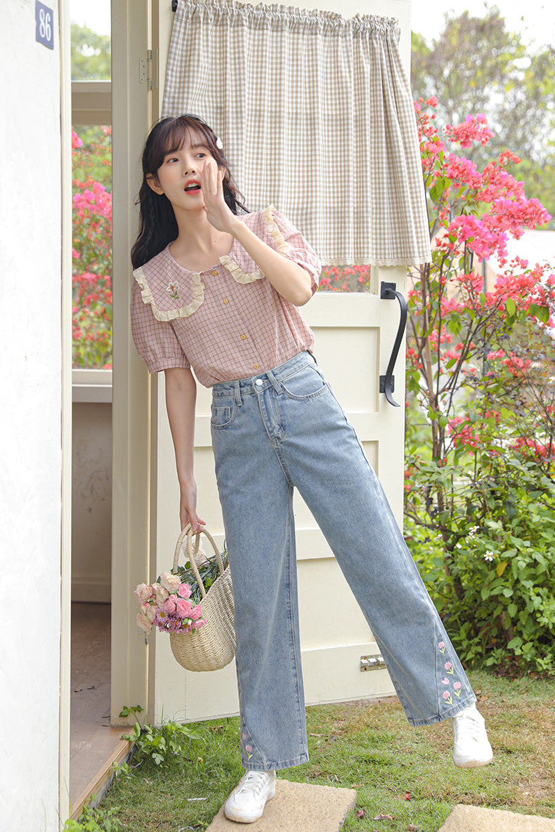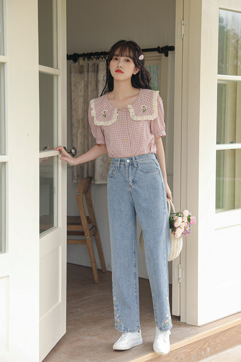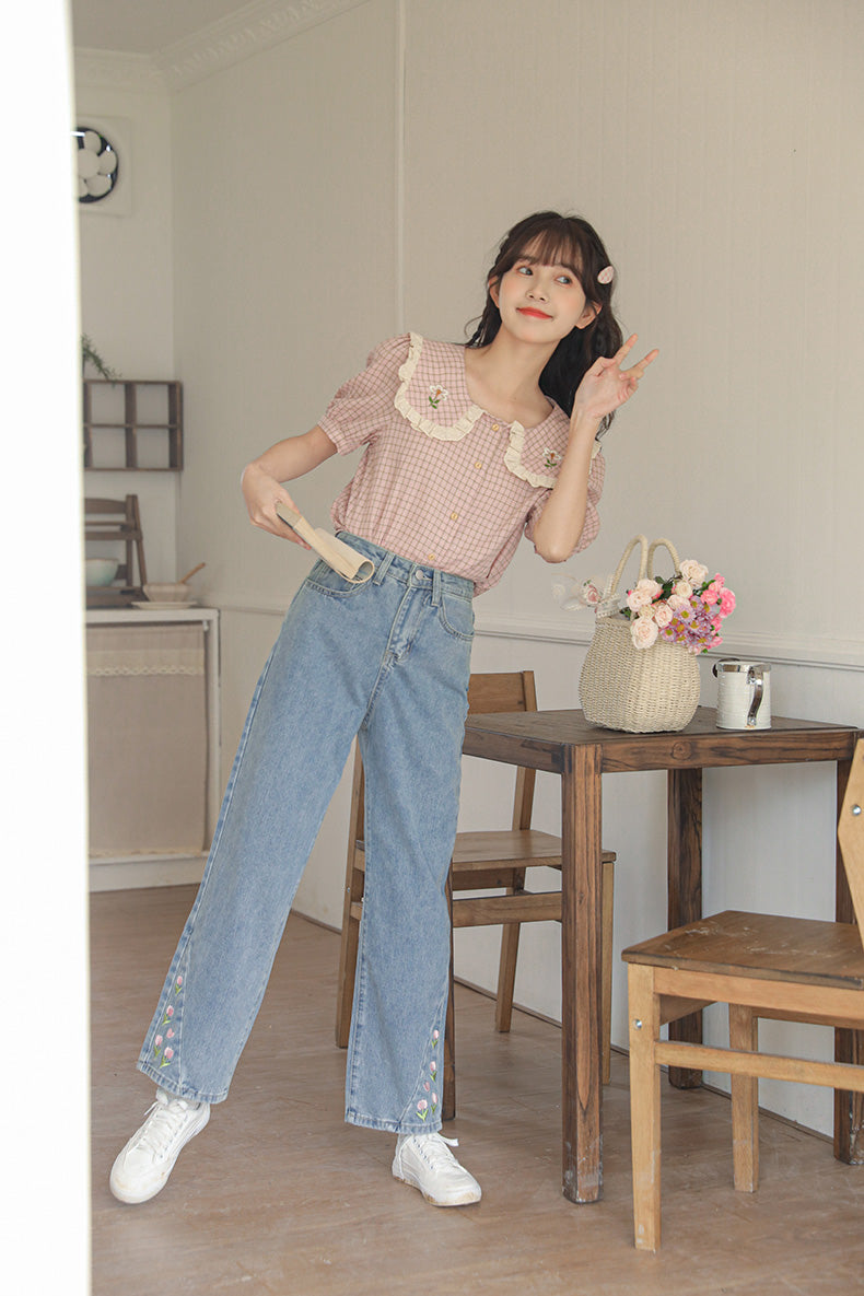 Tulip Tips Embroidered Jeans (2 Colors)