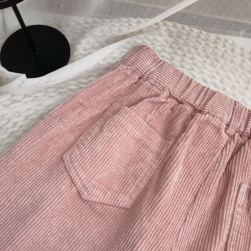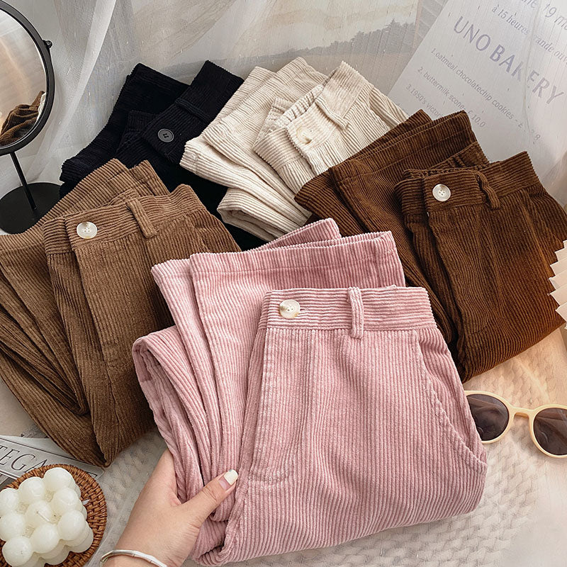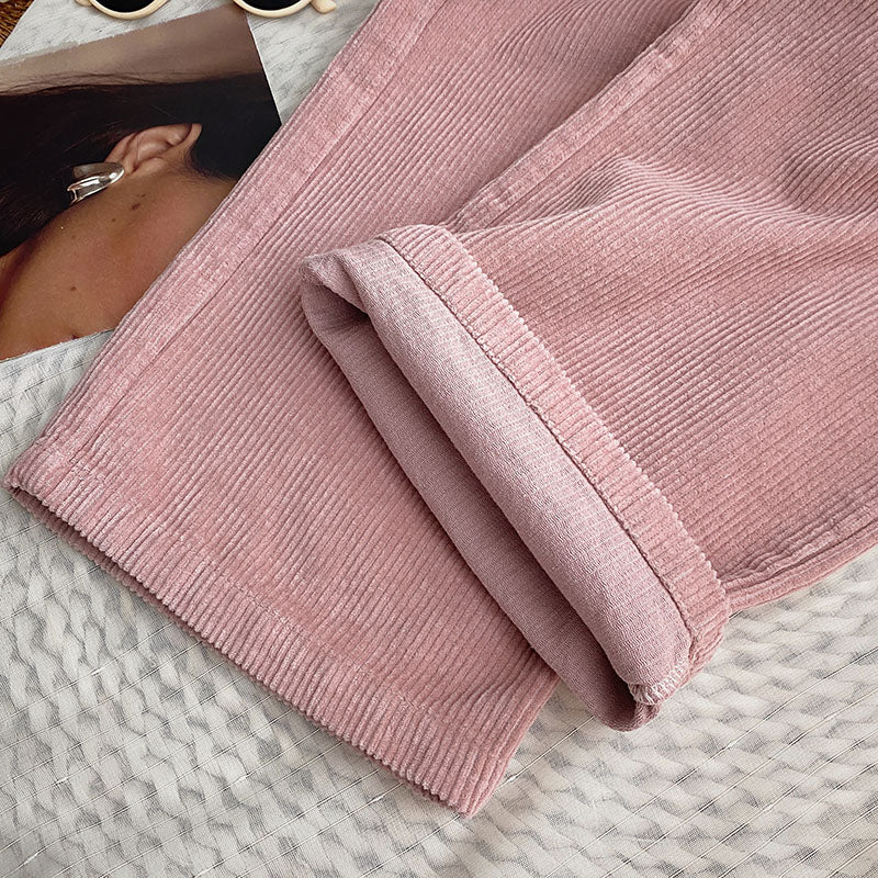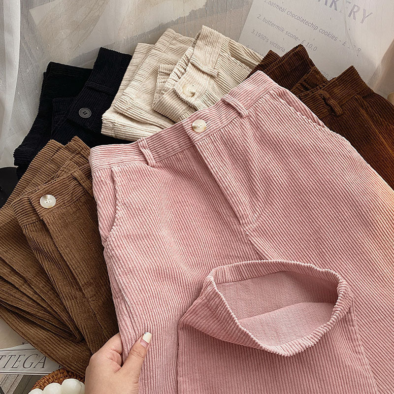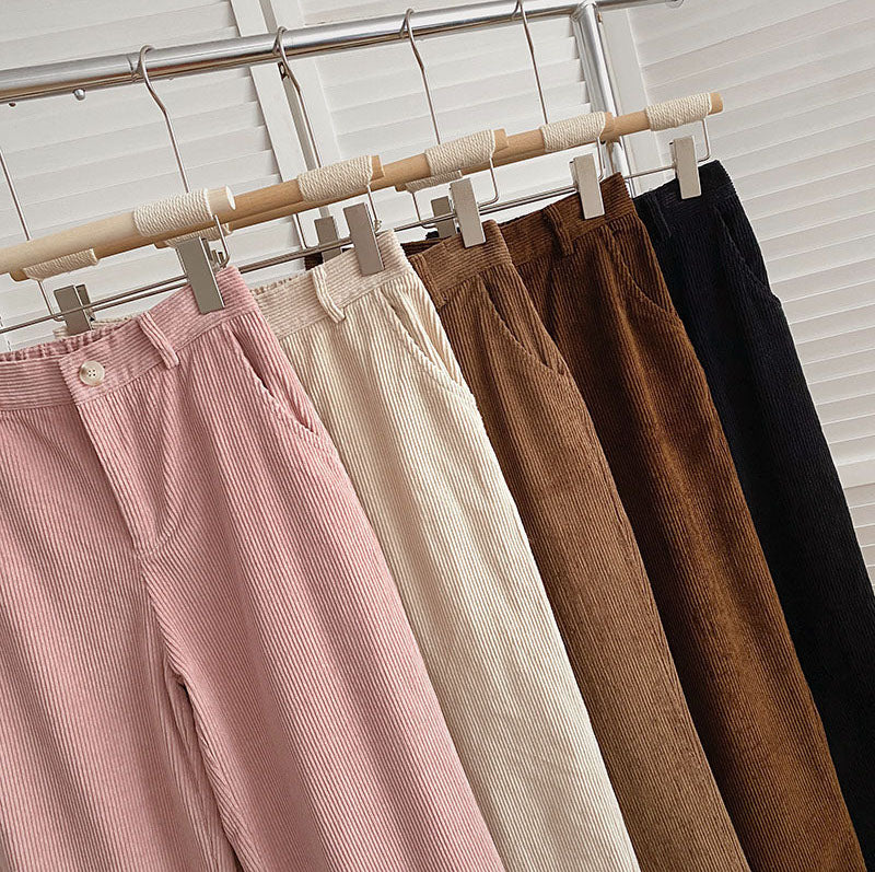 We know you love corduroy so we've brought back these classic corduroy pants with a standard high rise with tapered leg mom fit. Button and zip up front with belt loops, side pockets, back pockets and elastic back.