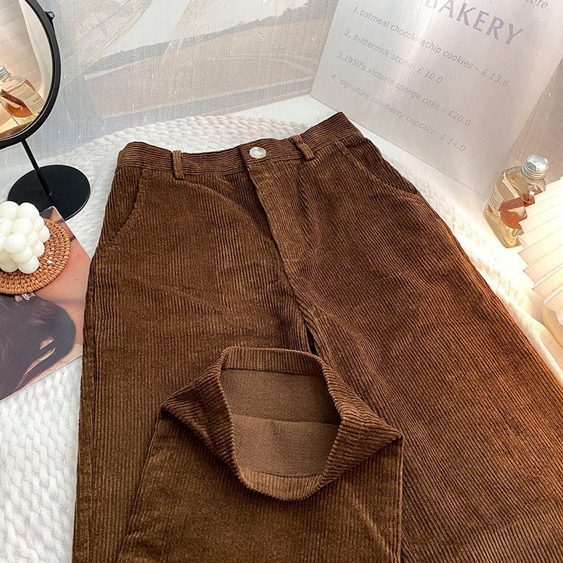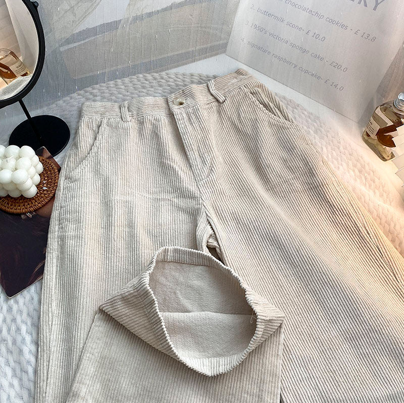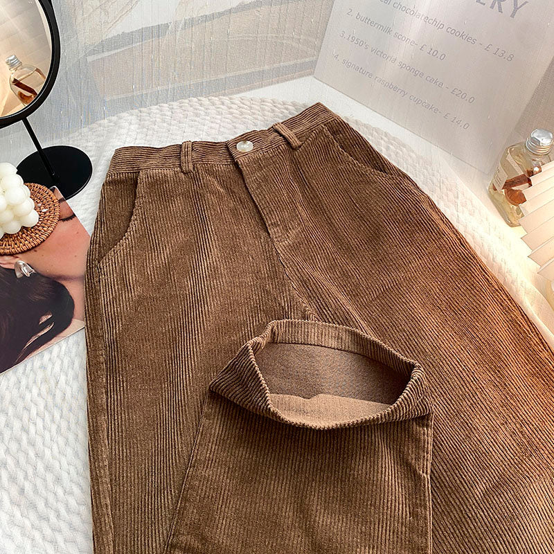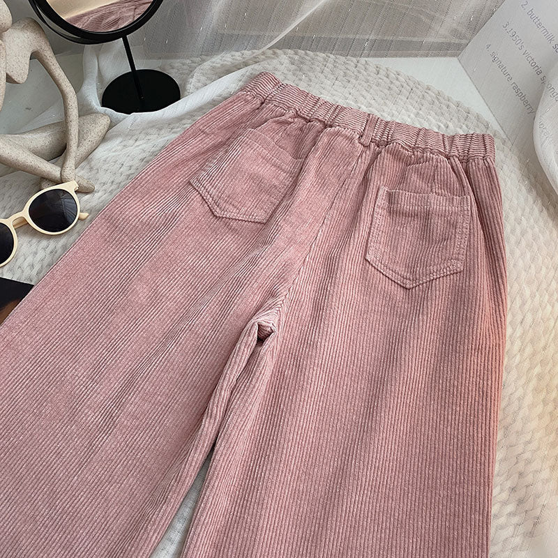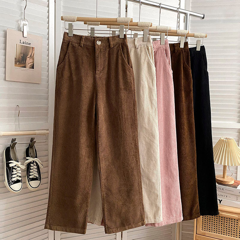 We know you love corduroy so we've brought back these classic corduroy pants with a standard high rise with tapered leg mom fit. Button and zip up front with belt loops, side pockets, back pockets and elastic back.
