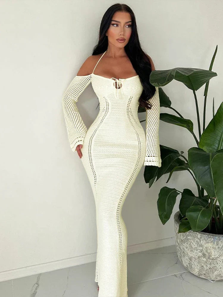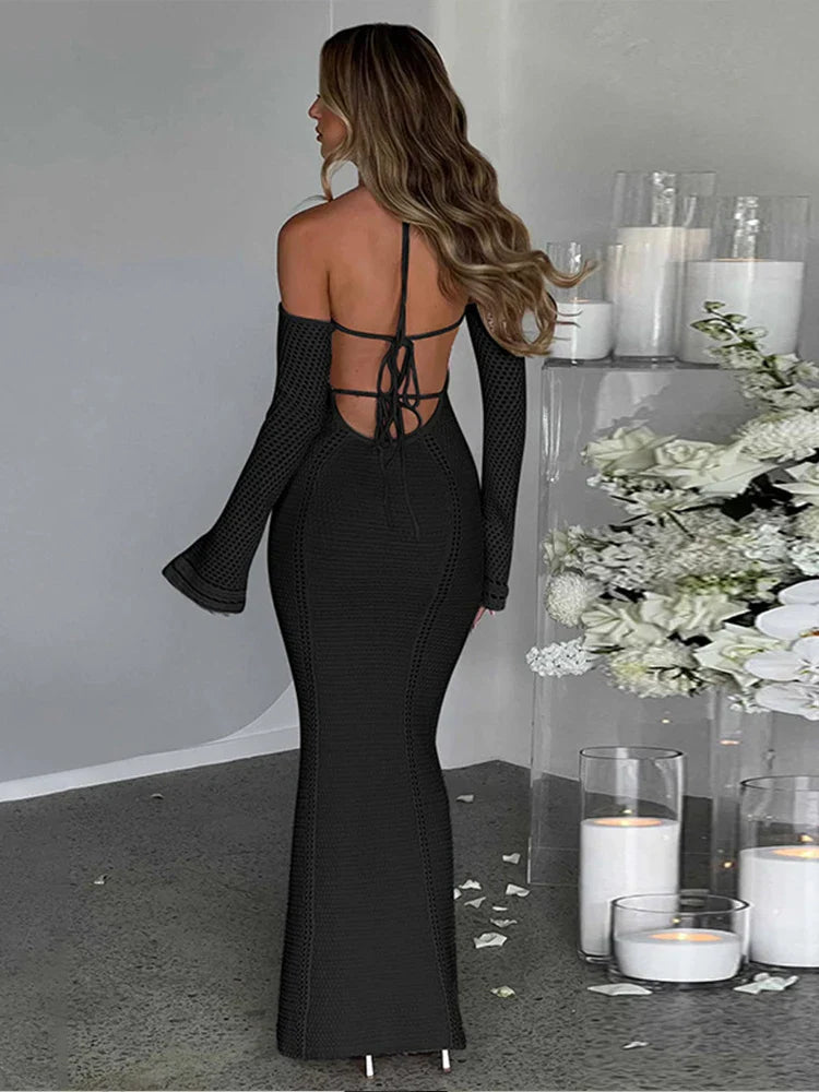 Knitting Bodycon Elegant Long Backless Sexy Party Maxi Dress