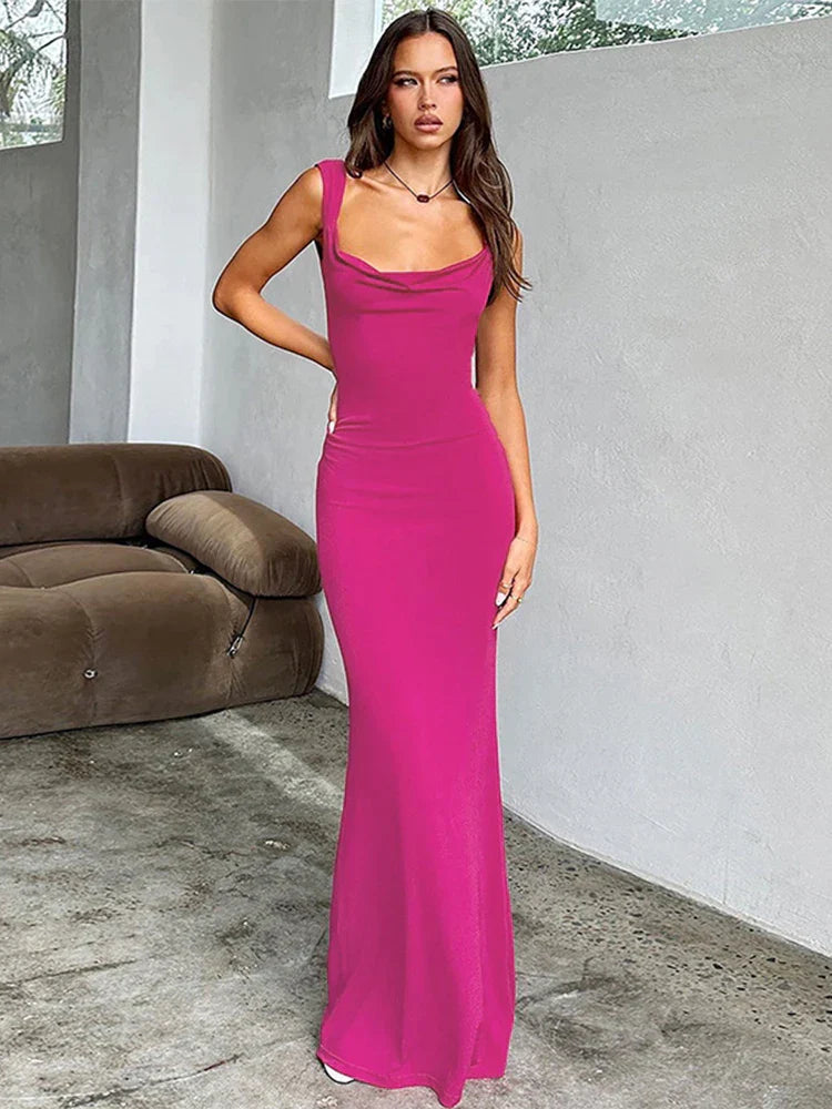 Material Composition : Synthetic Fiber Release Date : 2025 Closure Type : Pullover Fabric Type : Polyester Type : Camisole Age : Middle Age Season : Summer Neckline : Pile Collar Waistline : Empire Sleeve Style : Tank Dresses Length : Ankle-Length Sleeve Length(cm) : Sleeveless Pattern Type : Solid Silhouette : Sheath Style : Sexy & Club Material : Polyester,Spandex Gender : Women Elasticity : Slight Strech Fit Type : Slim