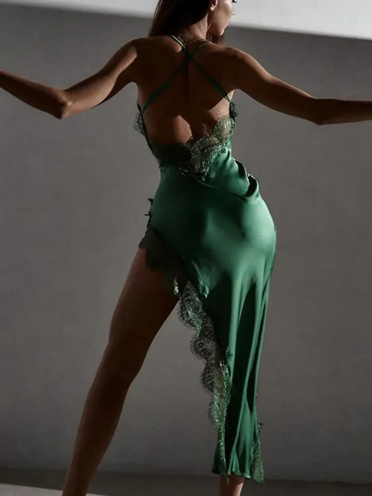 FashionSierra Lace Party Club Backless Bodycon Black Straps 2025 Summer Clothes Maxi Dress