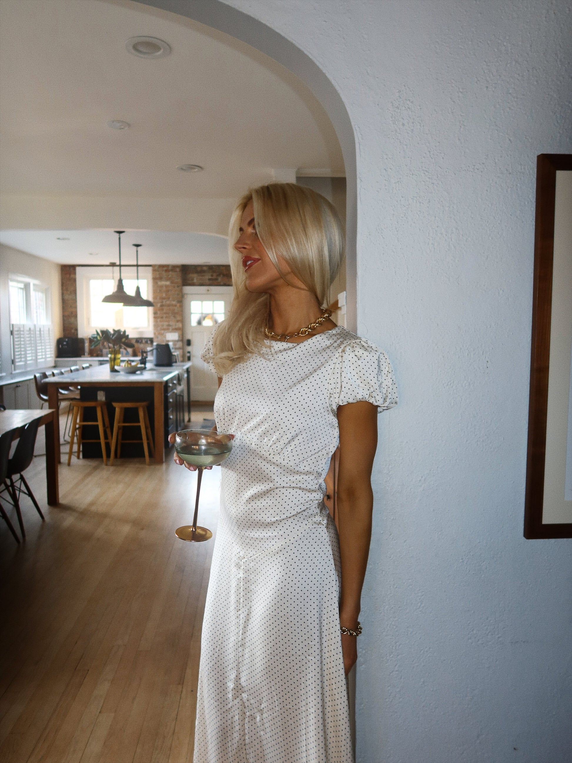 Lottie, lottie, lottie…WHERE DO I EVEN BEGIN. One of my fav dresses in this entire collection— stunning satin, ditsy dots and the silhouette? SO flattering. one of those dresses you put on and immediately fall absolutely in love with— and know you’re going to start wearing to everything. IT’S THAT GOOD!!