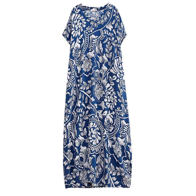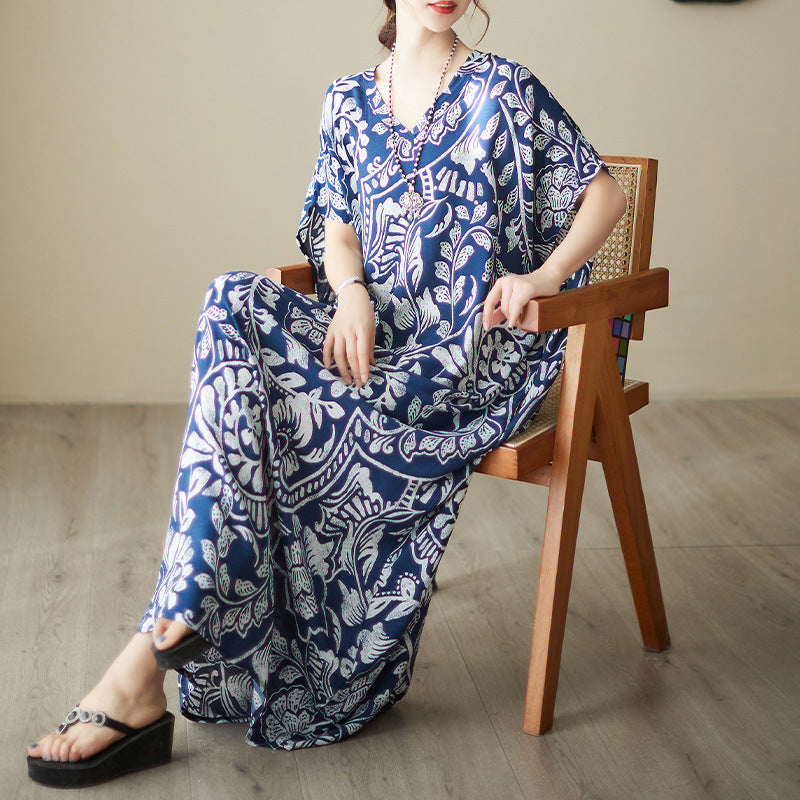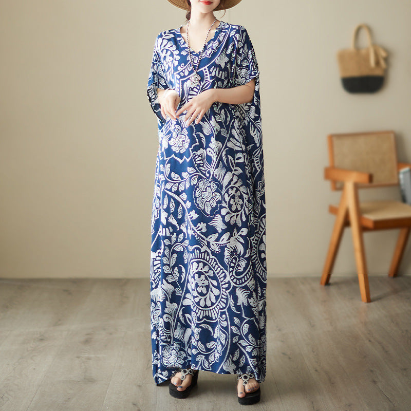 Women's V-neck Printed Cotton Maxi Dress Vacation Style Bohemian Dress