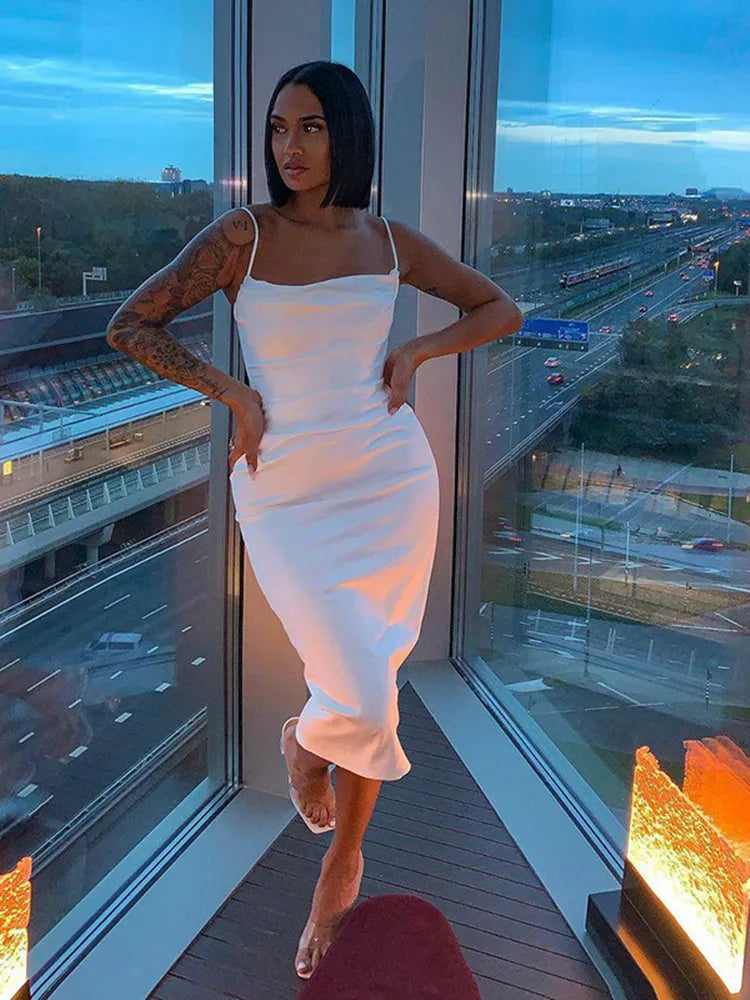 FashionSierra - Spaghetti Strap Women Hight Waist Sleeveless Red Party Pullover Elegant Slim Autumn Midi Dress