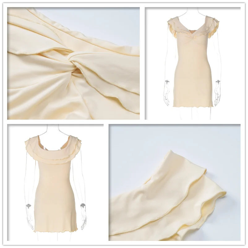 Ruffles Bodycon Spring Summer Strapless Backless Nightclub Sexy Party Mini Dress