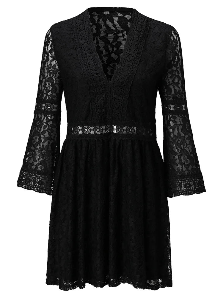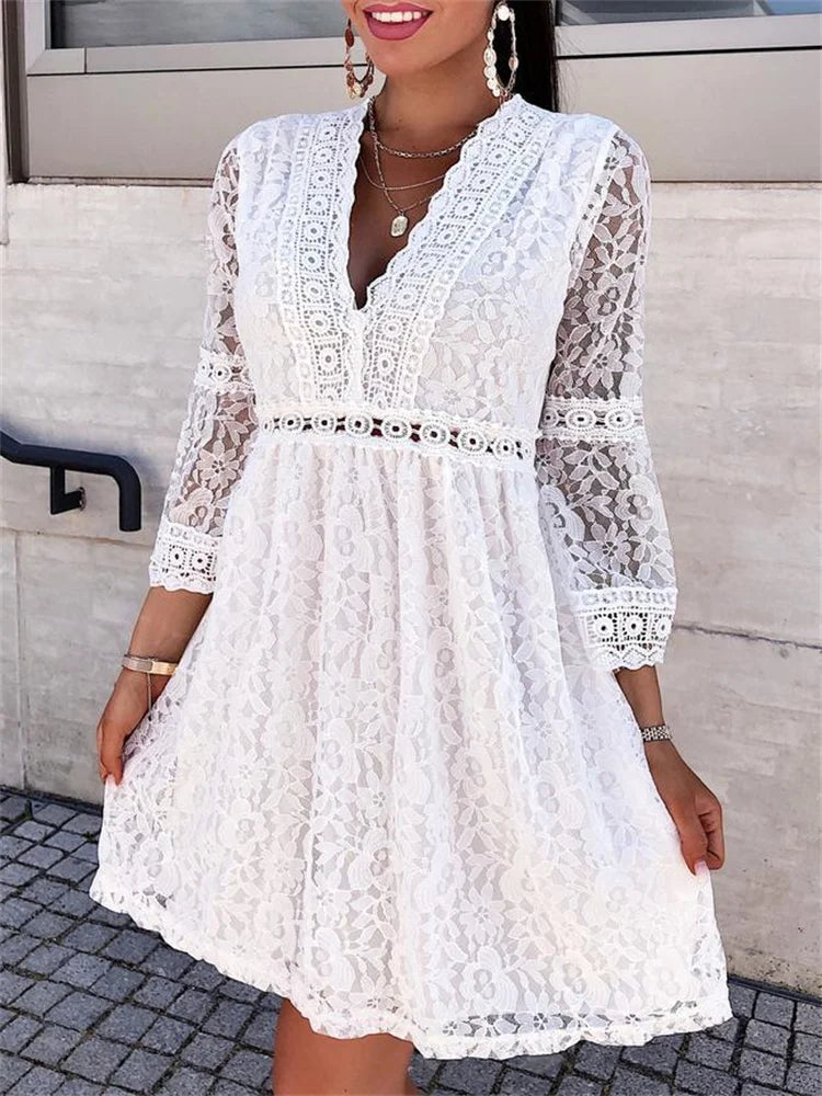 FashionSierra - Elegant Floral Lace Long Sleeve Mini Dress