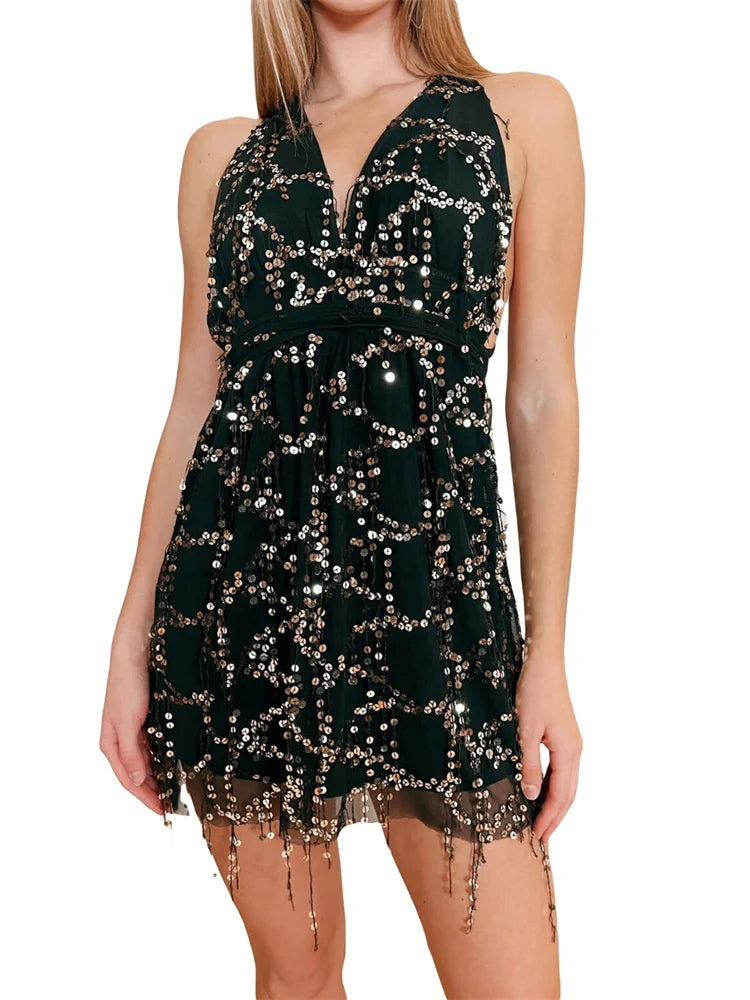 FashionSierra - Sequined Tassels Patchwork Beach Sexy Mini Dress