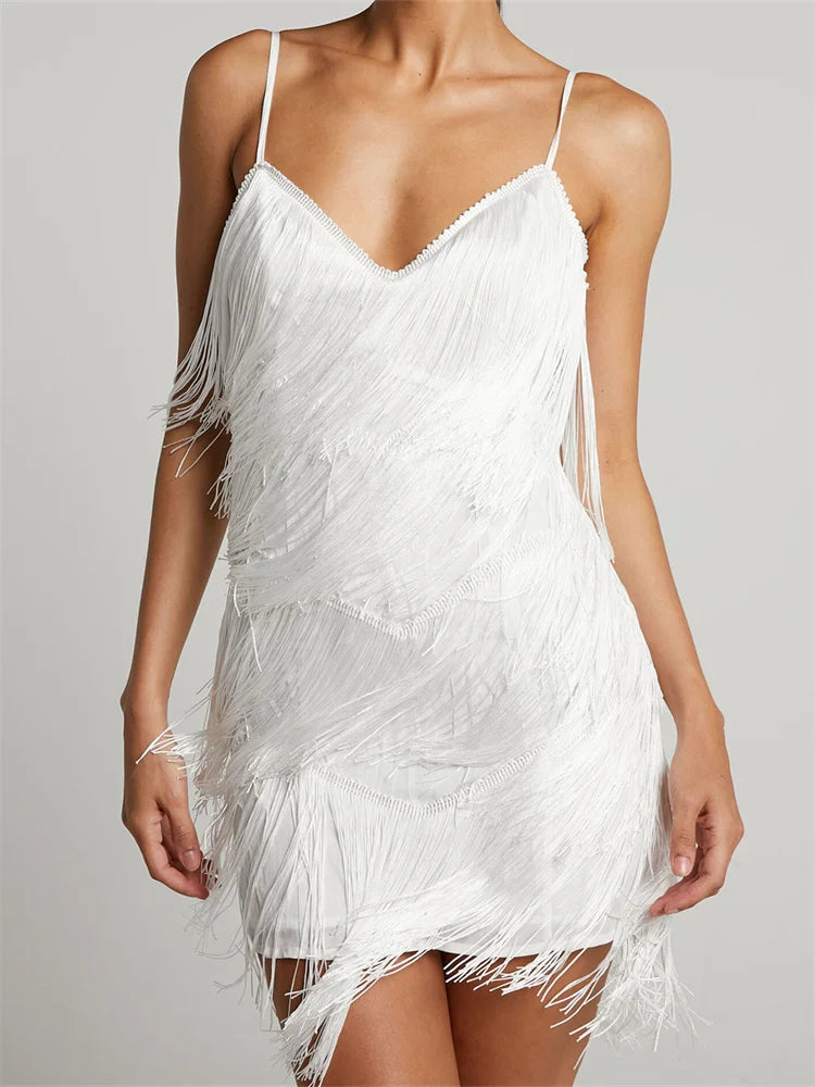 FashionSierra - 2025 Tassels Sleeveless Spaghetti Strap Mini Dress