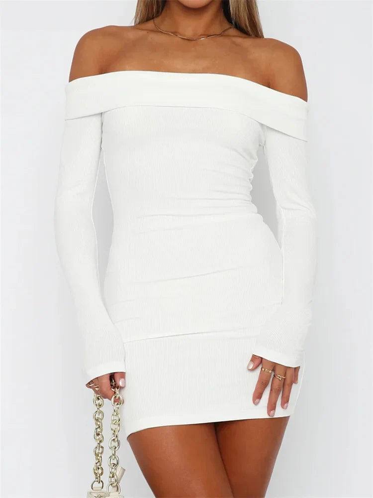 FashionSierra -Slash Neck Off Shoulder Pencil Mini Dress