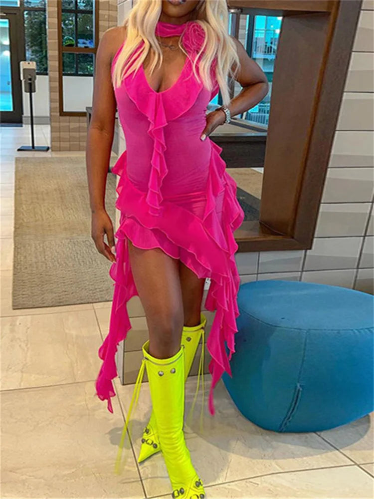 FashionSierra -3D Flower Patchwork Sleeveless V-neck Mini Dress